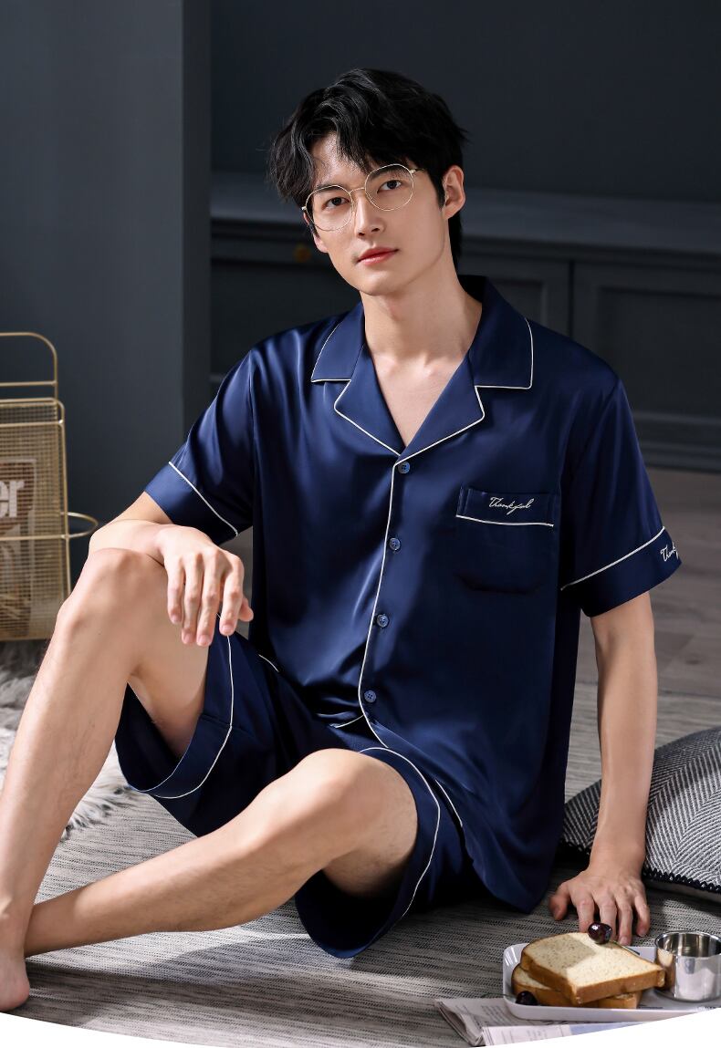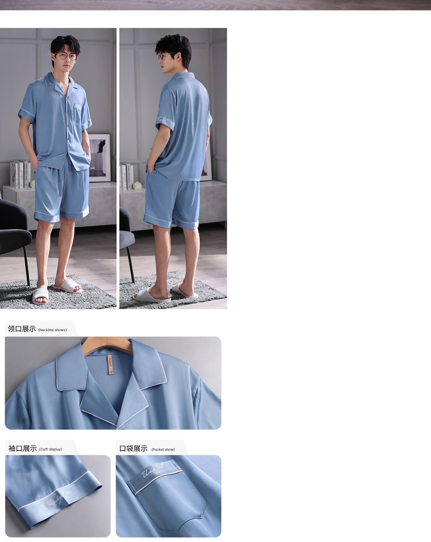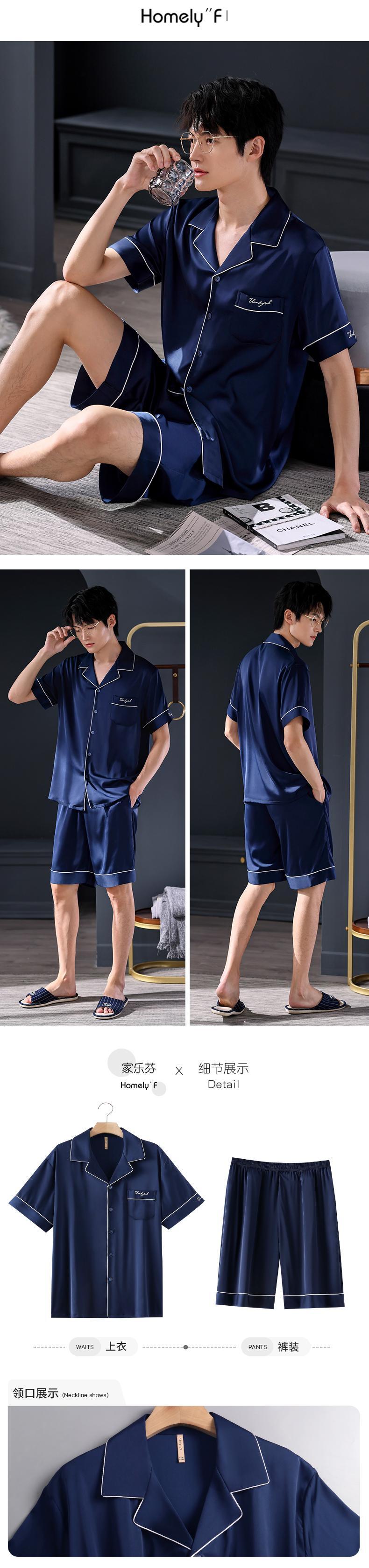 Carrefineパジャマメンズサマーシルクアイスシルク半袖ショーツシミュレーションシルク家庭服メンズサマーサマーモデル jial98729572053
