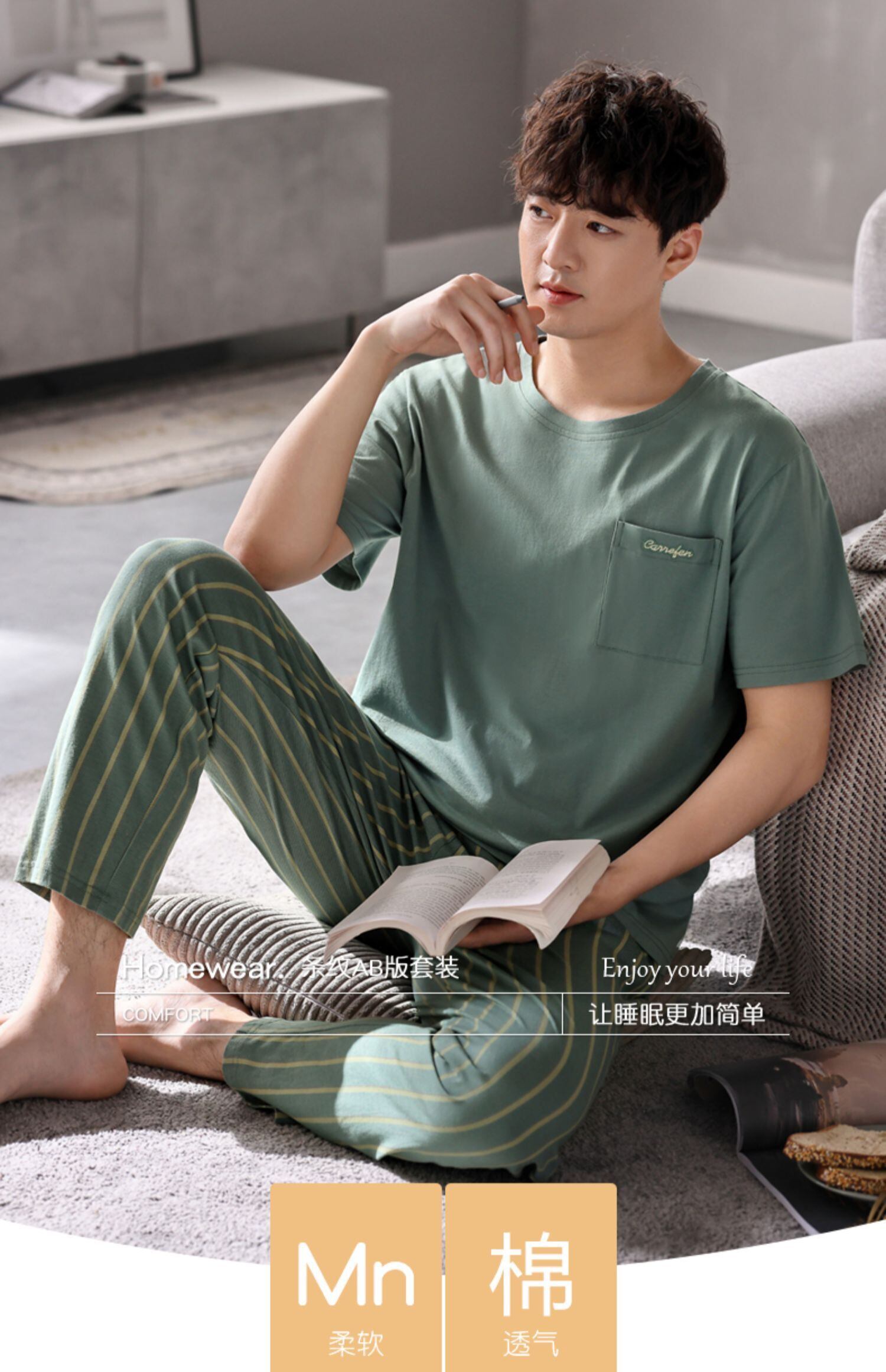 【やわらかい感じ】Jiarefenパジャマメンズサマーコットン半袖パンツホームサービスメンズサマーサマースーツ jial77389397074