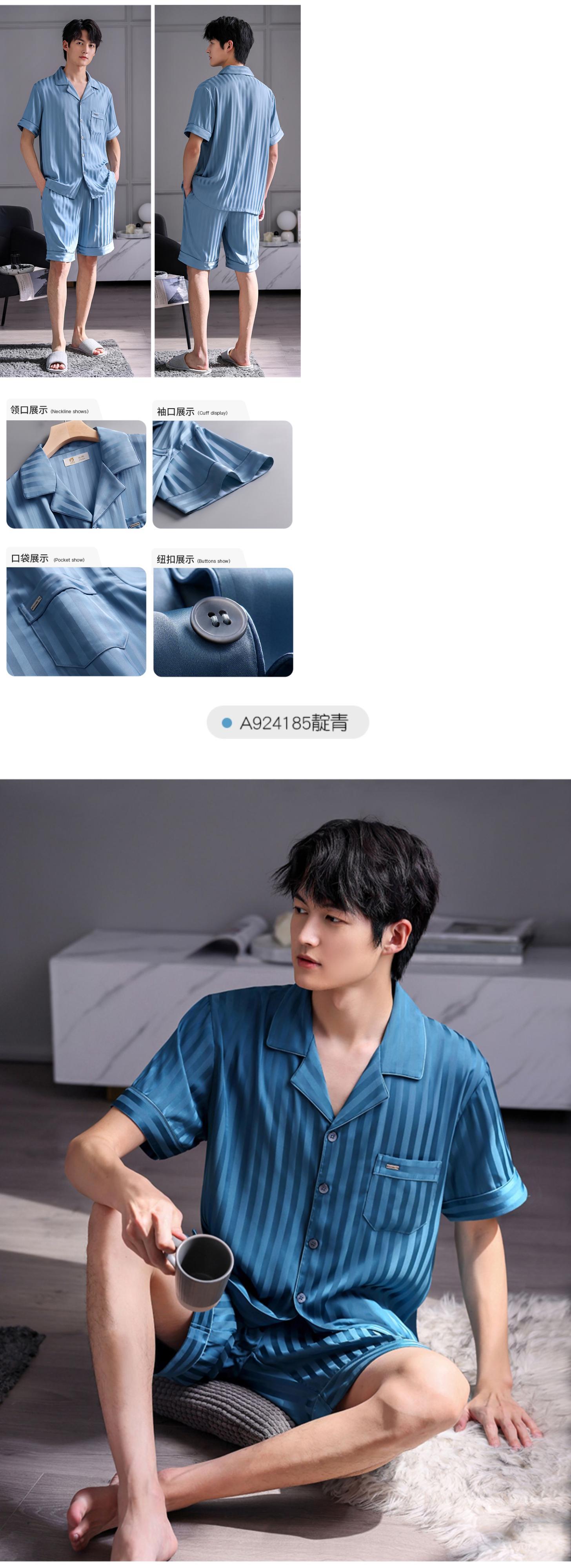 Carrefineパジャマメンズサマーシルクアイスシルク半袖ショーツシミュレーションシルク家庭服メンズサマーサマーモデル jial483941648