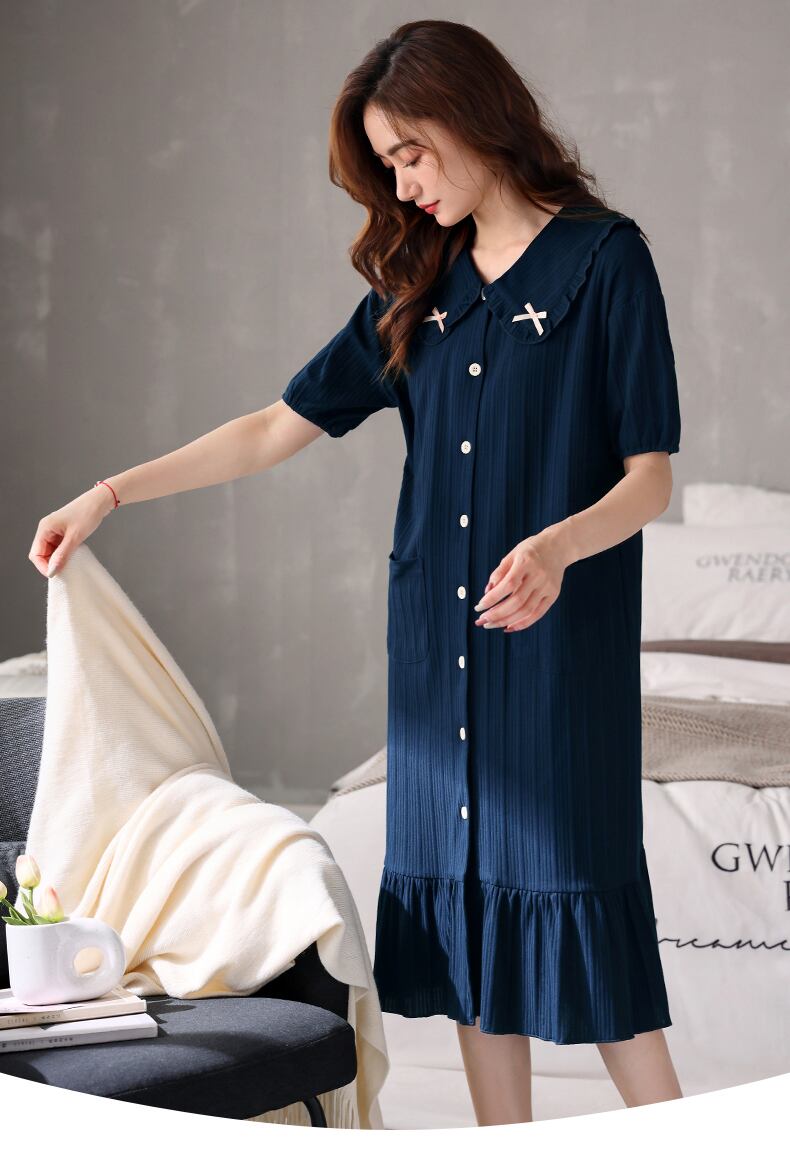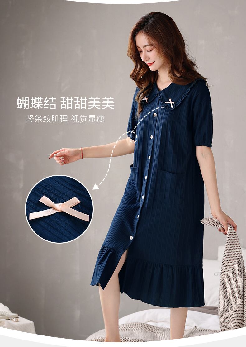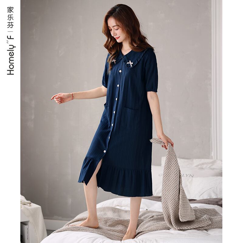 Carrefineネグリジェパジャマ夏夏夏コットン半袖ロングラージシャツカーディガンスタイル jial99706577079