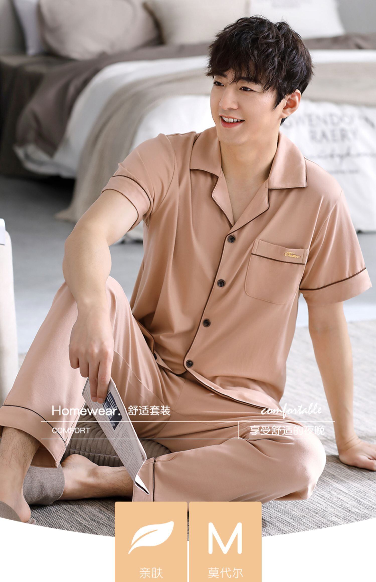Carrefineパジャマメンズサマーサマーモデルサマーモーダル半袖パンツホームサービスメンズアイスシルクメンズスーツ jial80935682742