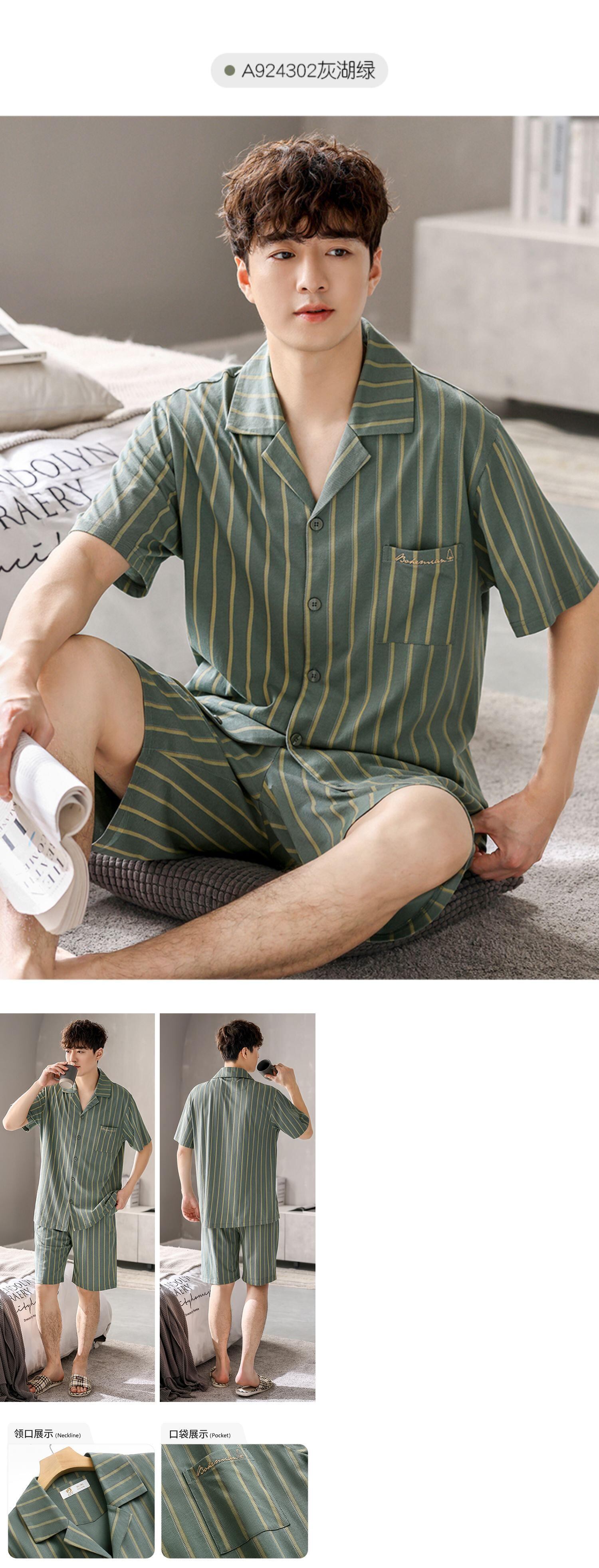 【やわらかい感じ】Jiarefenパジャマメンズサマーコットン半袖ショーツホームサービスメンズサマーサマースーツ jial85392514982