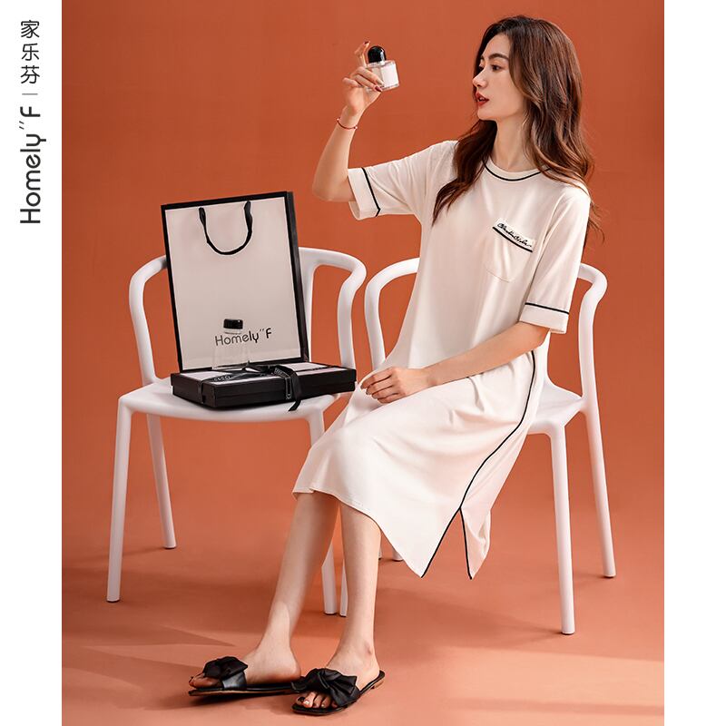 Carrefineネグリジェレディースパジャマ夏夏夏モーダル半袖高級ロングプラスサイズのドレス jial38325303573