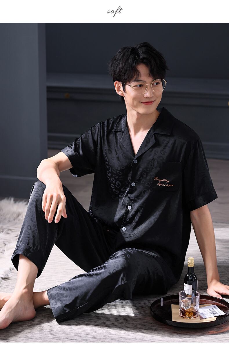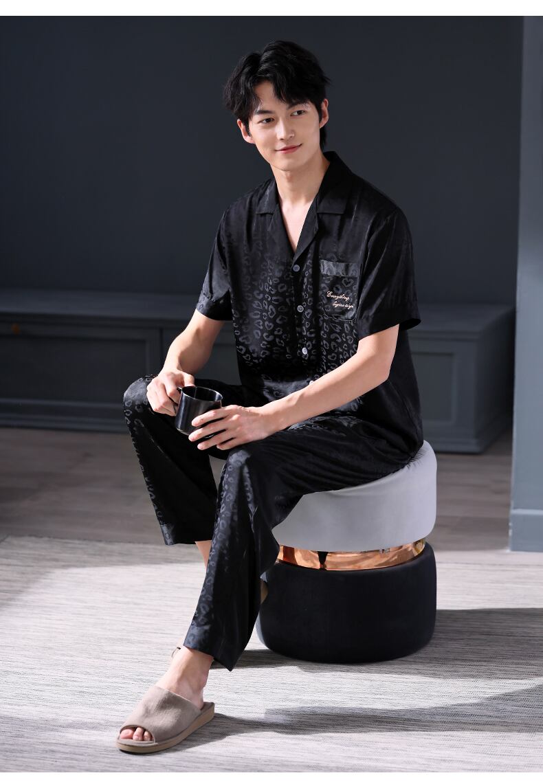 パジャマメンズサマーシルクアイスシルク半袖パンツイミテーションシルクホームサービスメンズサマーサマーヒョウ柄スーツ jial12701369036