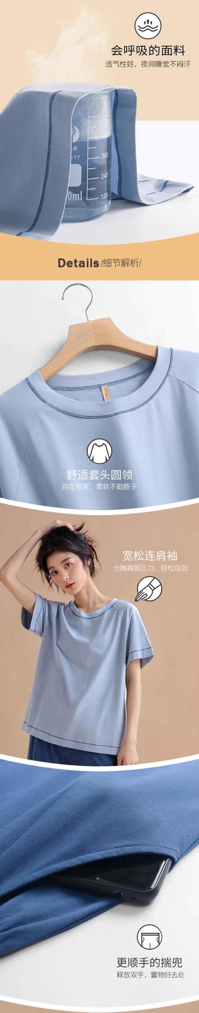 【ライクラコットン】Carrefineパジャマレディースサマーピュアコットン半袖パンツ家庭服夏夏モデルは屋外で着用可能 jial28261819756