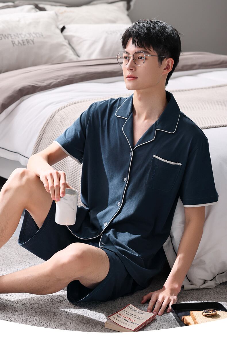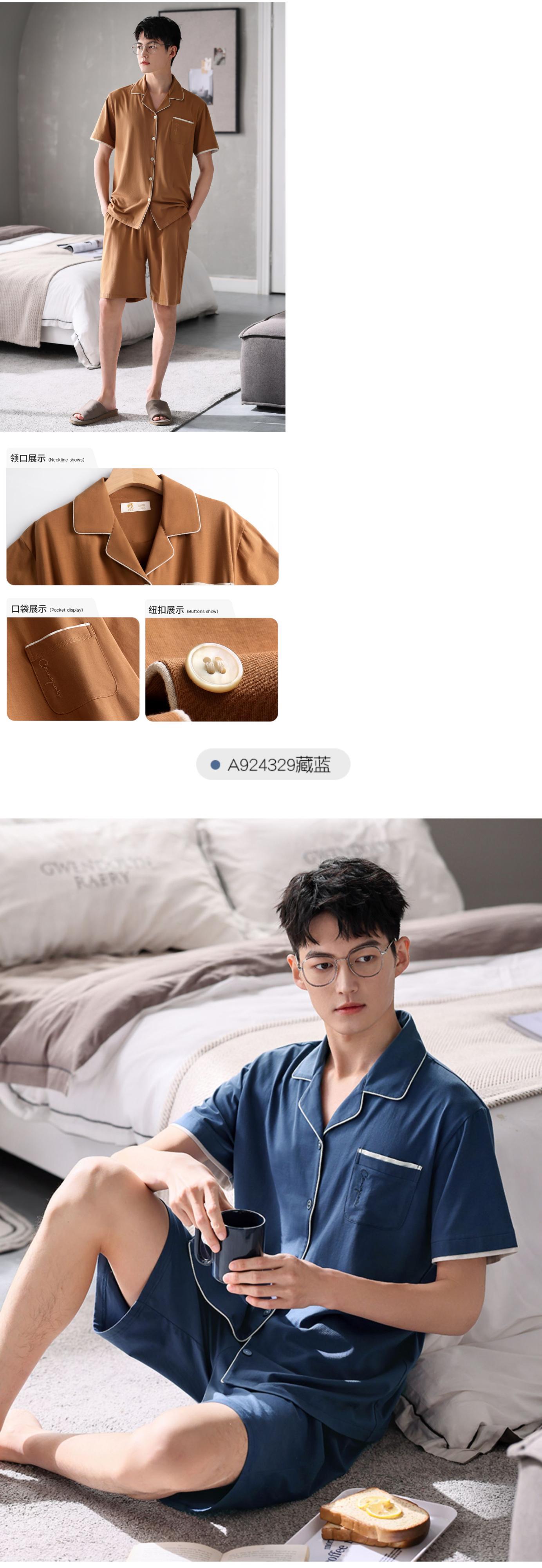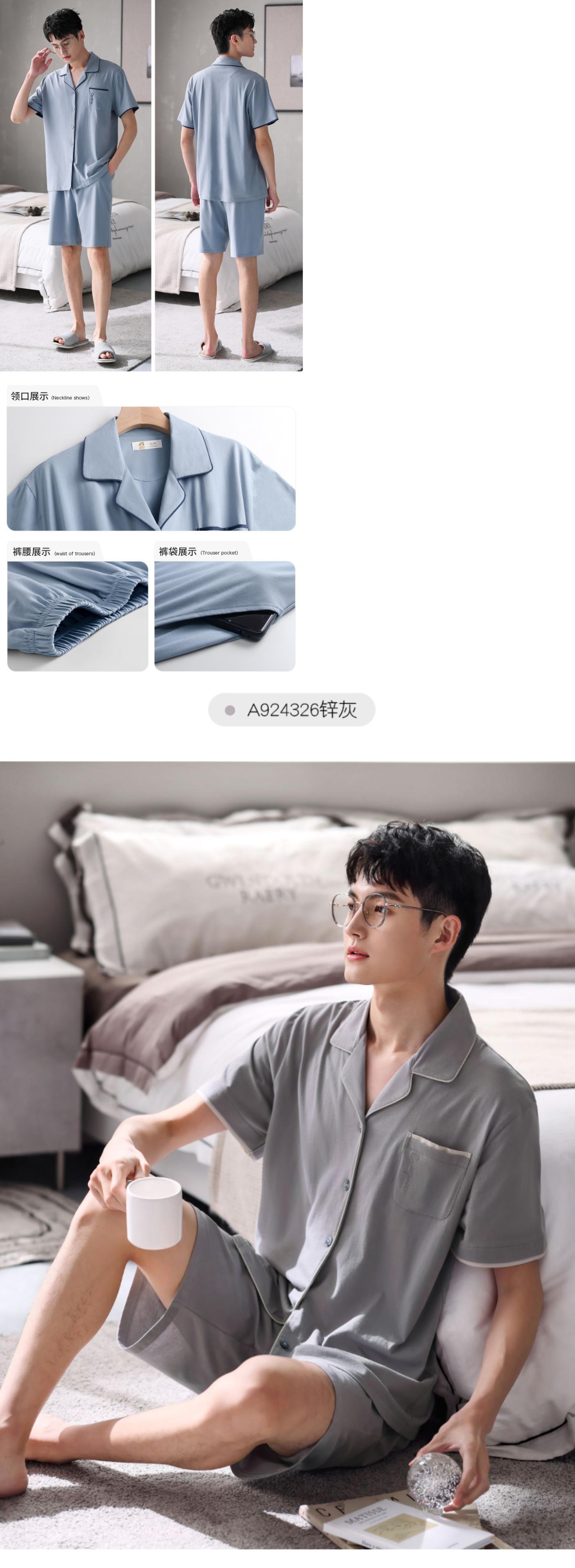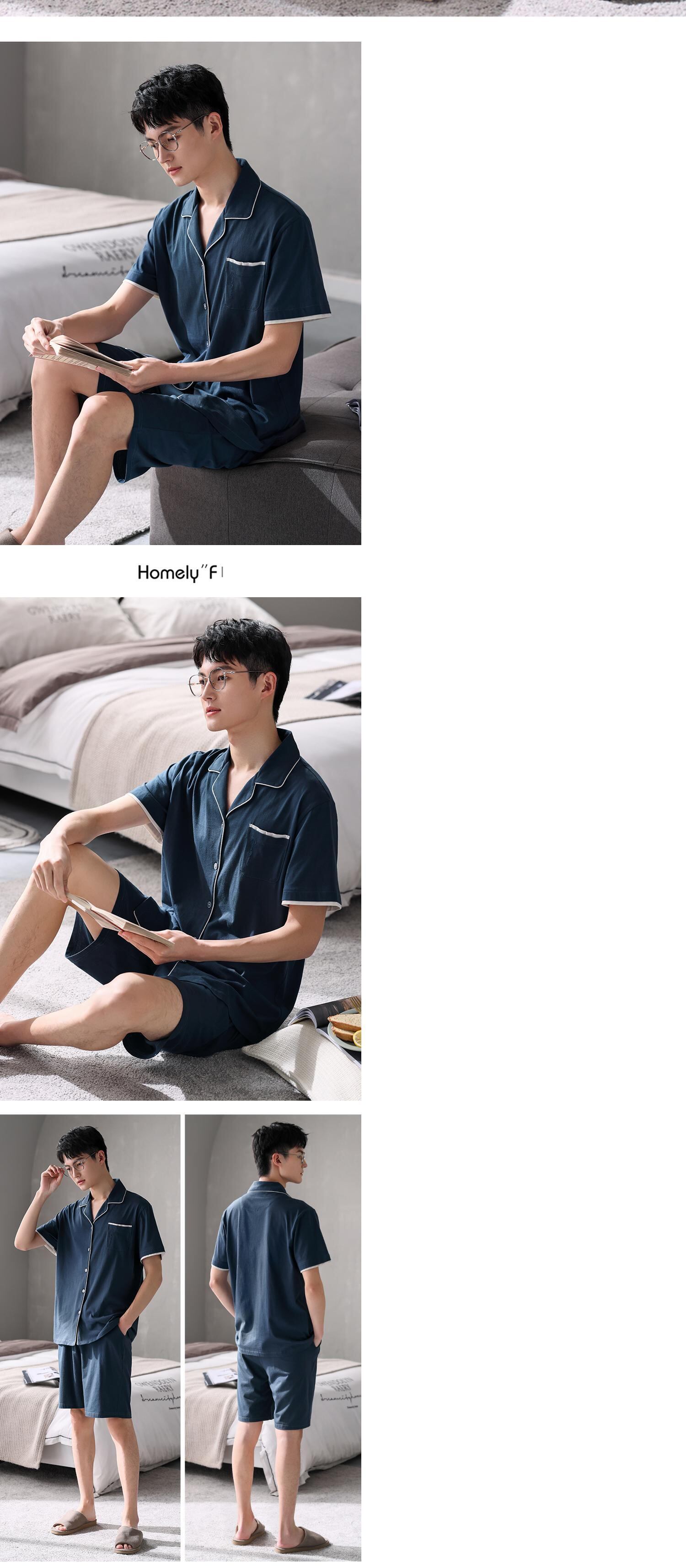 【やわらかい感じ】Jiarefenパジャマメンズサマーコットン半袖ショーツホームサービスメンズサマーサマースーツ jial9332781661