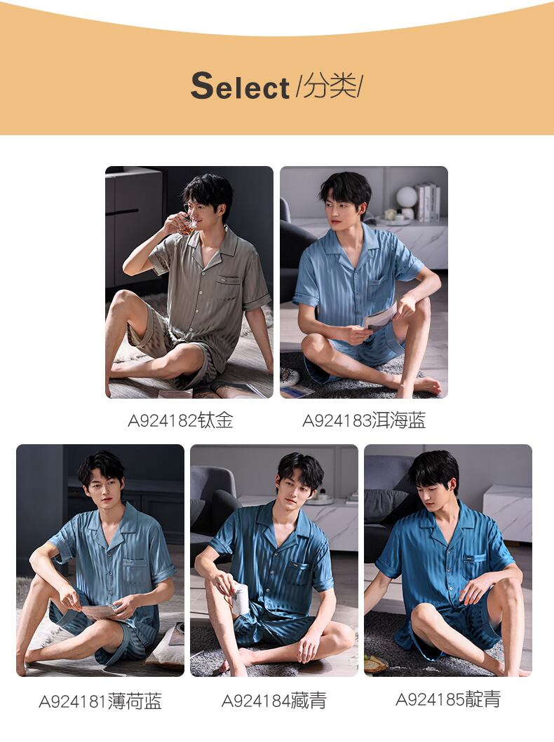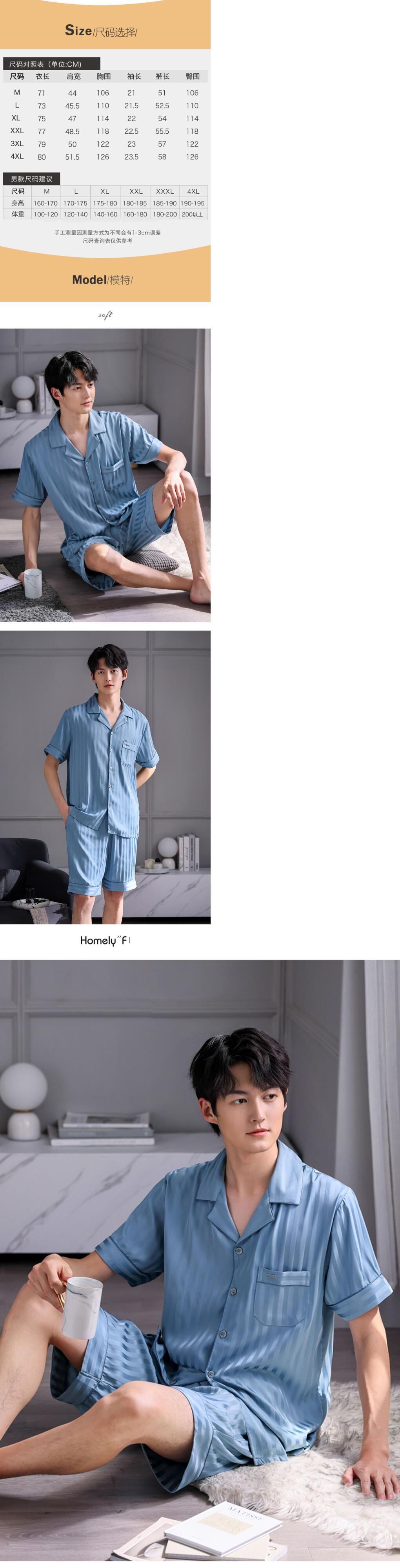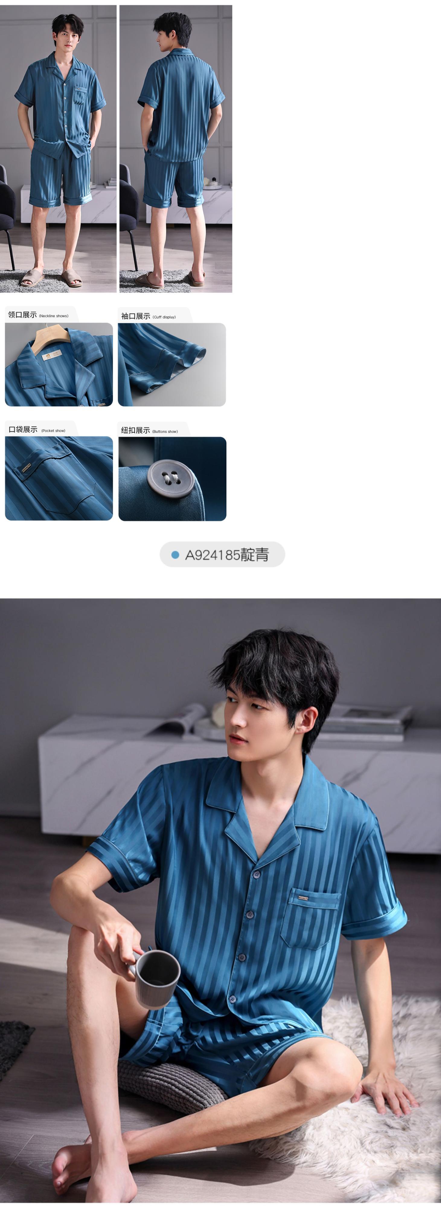 Carrefineパジャマメンズサマーシルクアイスシルク半袖ショーツシミュレーションシルク家庭服メンズサマーサマーモデル jial16621075929
