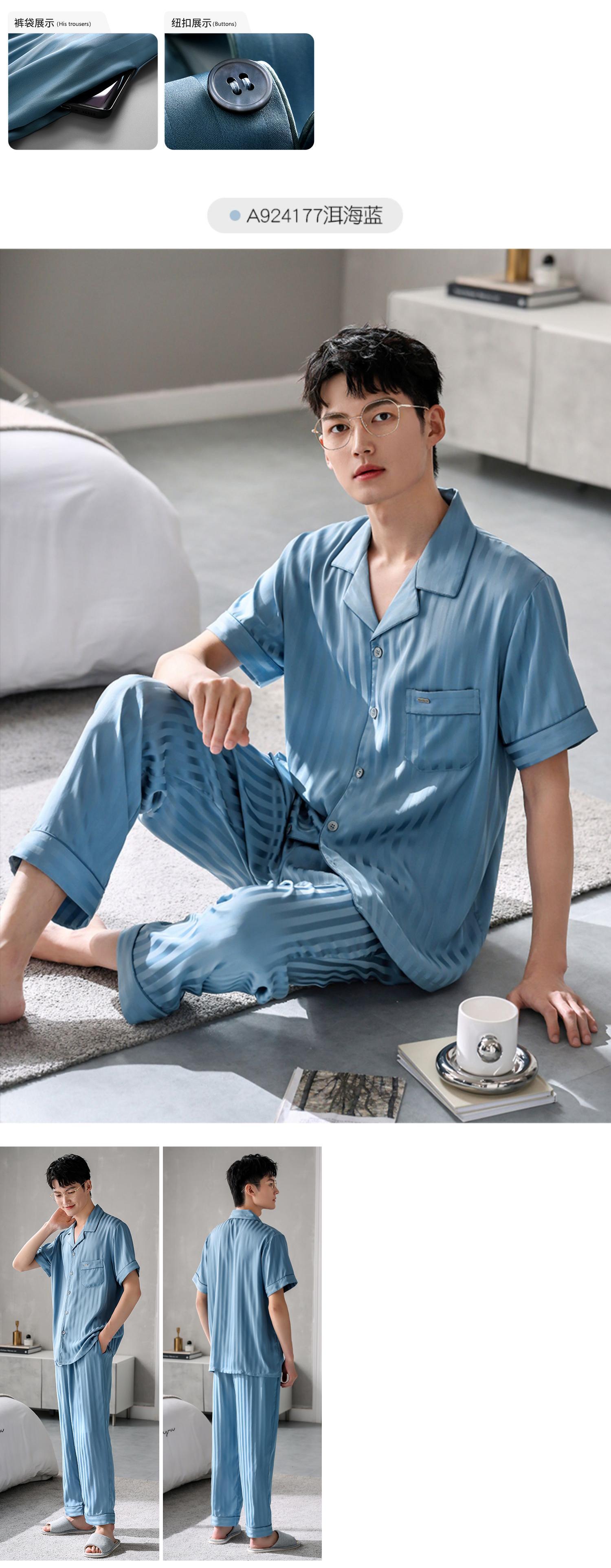 Carrefineパジャマメンズサマーシルクアイスシルク半袖パンツシミュレーションシルクホームサービスメンズサマーサマーモデル jial17588959883