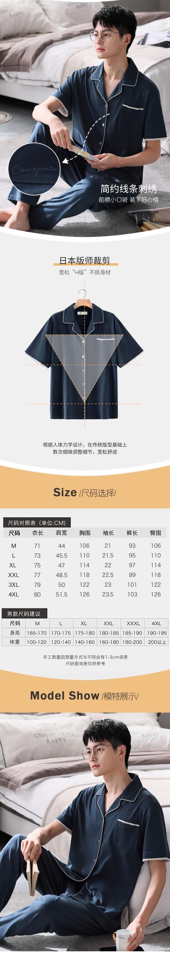 【やわらかい感じ】Jiarefenパジャマメンズサマーコットン半袖パンツホームサービスメンズサマーサマースーツ jial48764335489