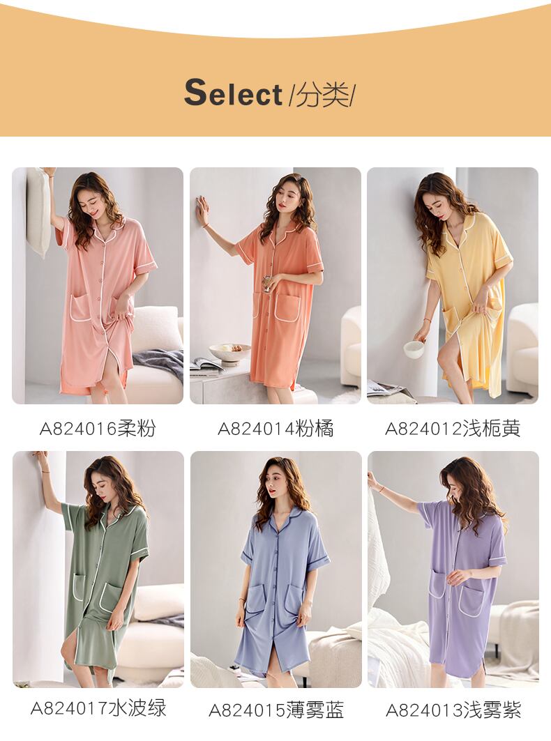 Carrefineネグリジェレディースパジャマ夏夏夏モーダル半袖長袖妊婦プラスサイズシャツカーディガン jial37327061180
