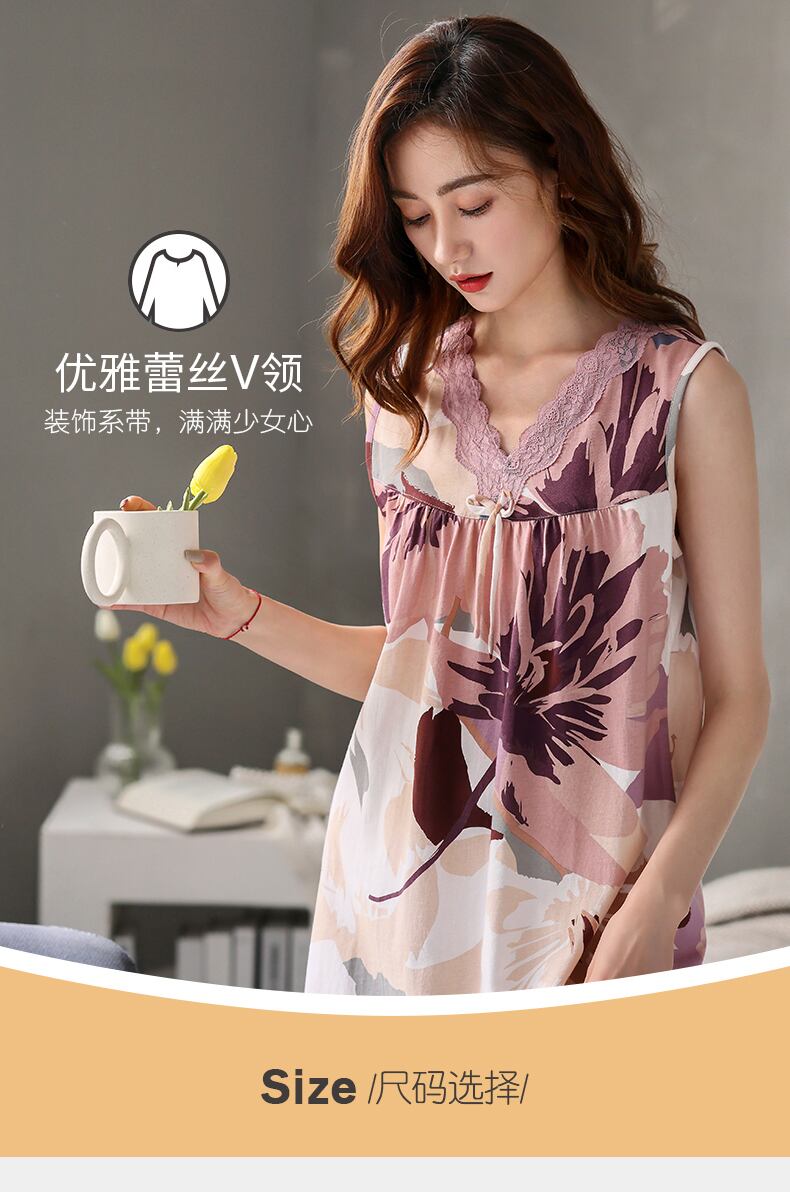 Carrefineネグリジェレディースパジャマ夏夏夏コットンベストノースリーブドレス高品質プラスサイズ jial72459090970