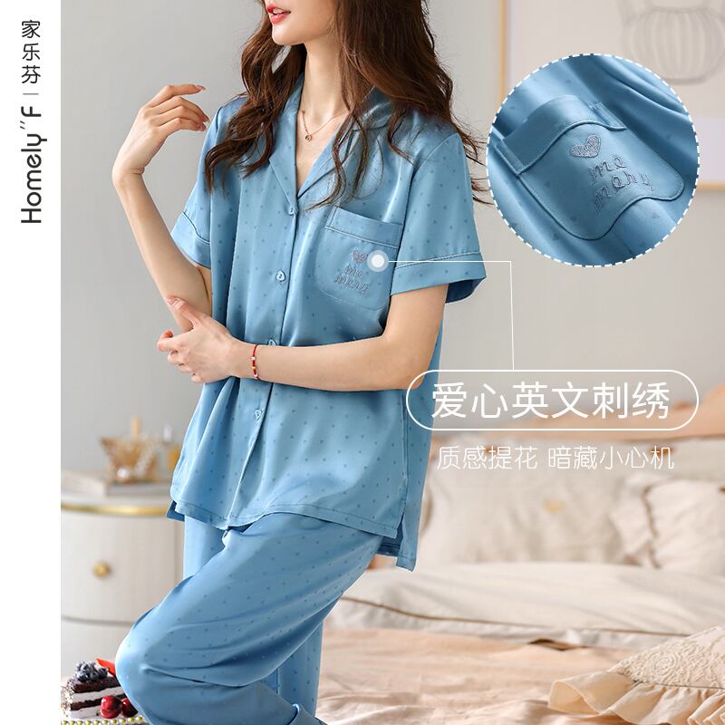パジャマサマーシルクアイスシルク半袖パンツホームウェアサマーサマー薄片シミュレートシルクラージサイズスーツ jial10950003077