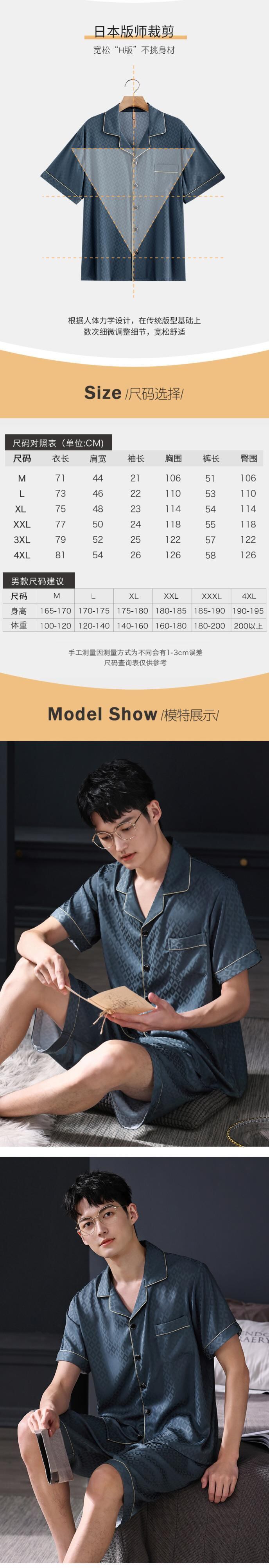 Carrefineパジャマメンズサマーシルクアイスシルク半袖ショーツシミュレーションシルク家庭服メンズサマーサマーモデル jial9512505340
