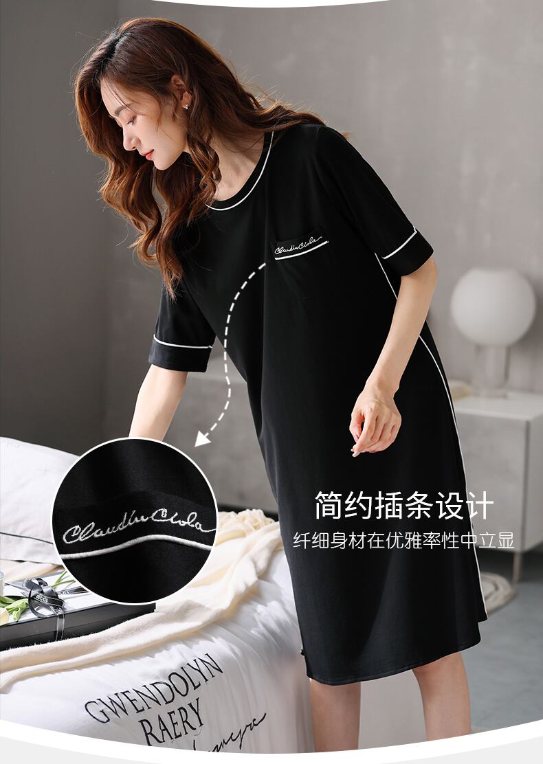 Carrefineネグリジェレディースパジャマ夏夏夏モーダル半袖高級ロングプラスサイズのドレス jial47654311483
