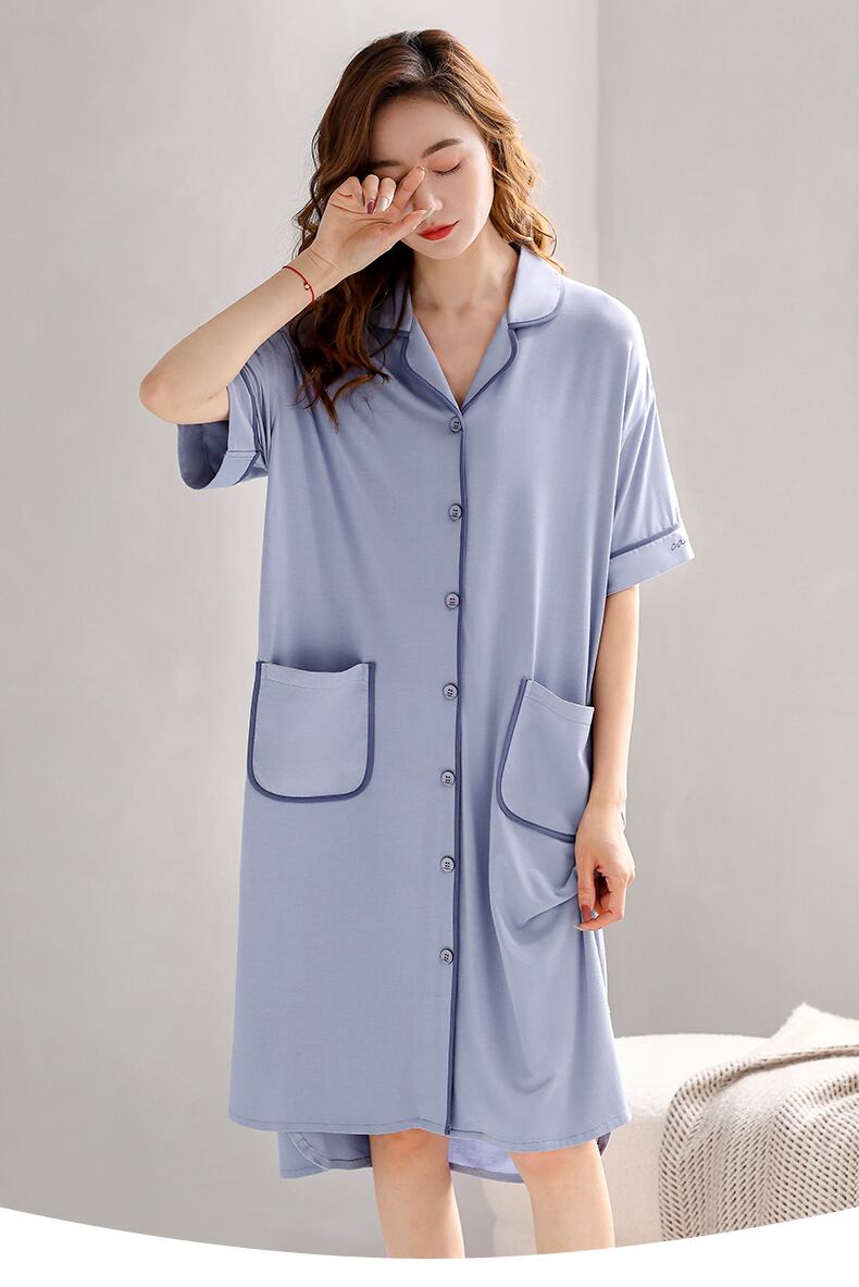 Carrefineネグリジェレディースパジャマ夏夏夏モーダル半袖長袖妊婦プラスサイズシャツカーディガン jial47492309001