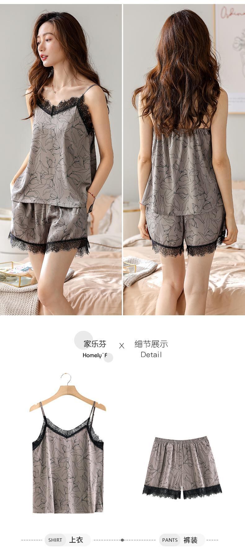 パジャマ夏夏夏シルクアイスシルクキャミソールホーム服シミュレートされたシルク薄いセクシーなスーツ jial27682514592