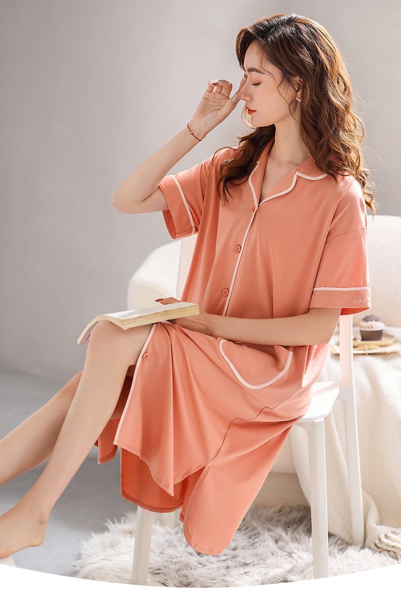 Carrefineネグリジェレディースパジャマ夏夏夏モーダル半袖長袖妊婦プラスサイズシャツカーディガン jial45195124651