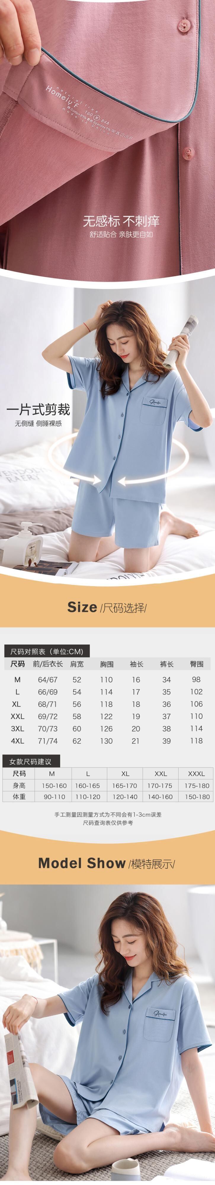 【やわらかい感じ】Jiarefenパジャマレディースサマーコットン半袖ショーツ家庭服夏夏ラージサイズスーツ jial69040648172