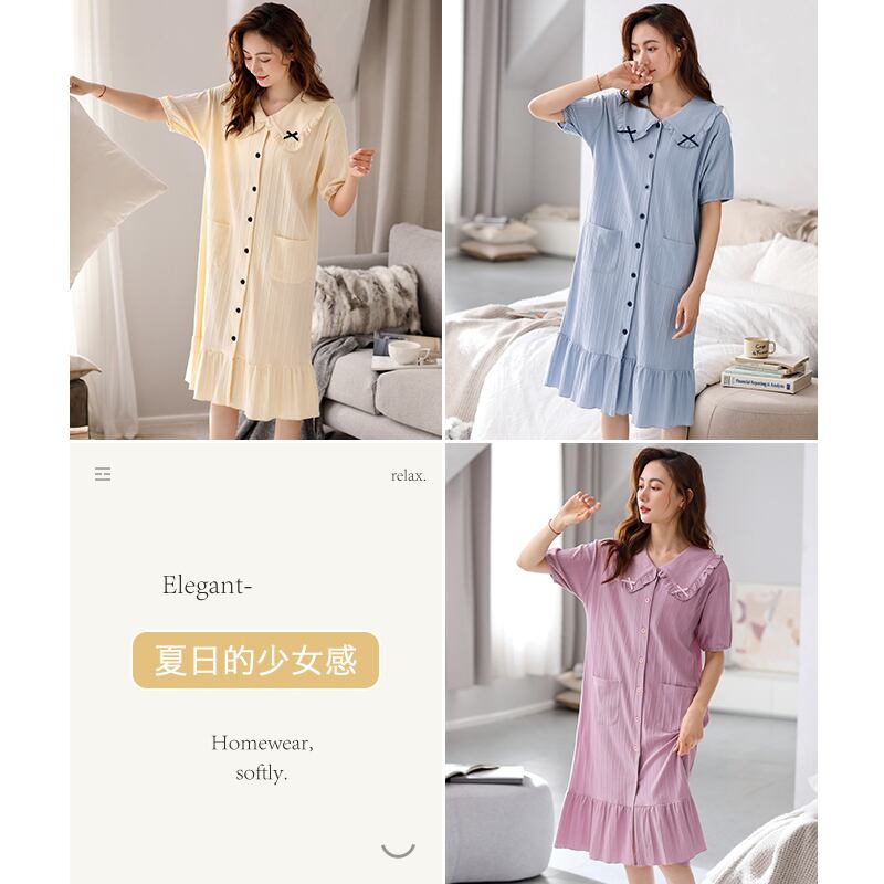 Carrefineネグリジェパジャマ夏夏夏コットン半袖ロングラージシャツカーディガンスタイル jial40205144419