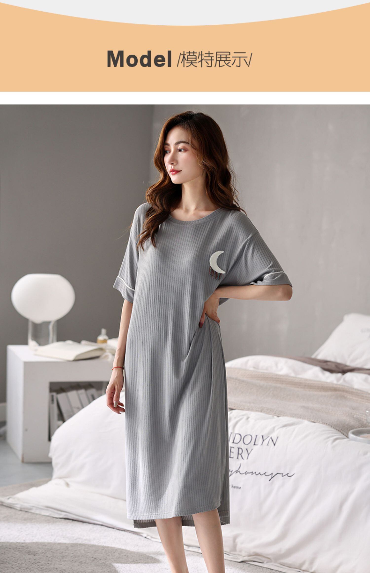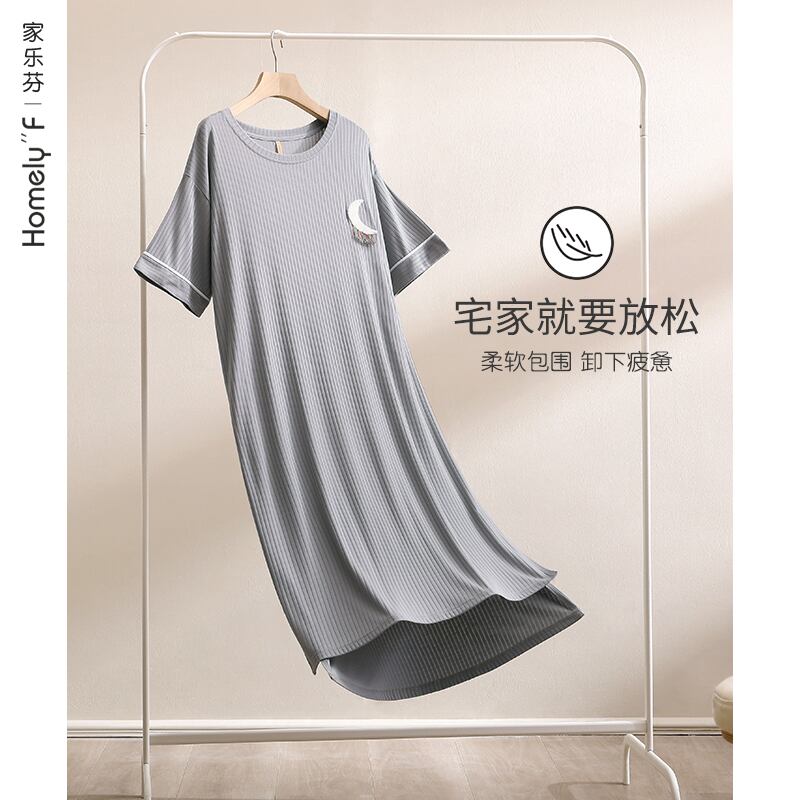 Carrefineネグリジェレディースパジャマ夏夏夏モーダル半袖ロングドレスラージサイズアイスシルク jial78456197962