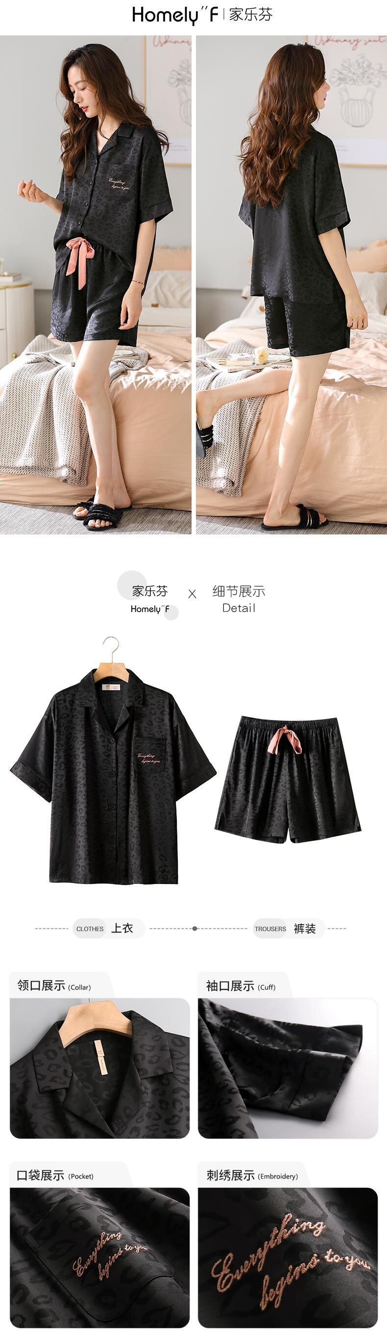 Carrefineパジャマ夏夏夏シルクアイスシルク半袖ショーツホームウェアラージサイズヒョウ柄スーツ jial46785100814