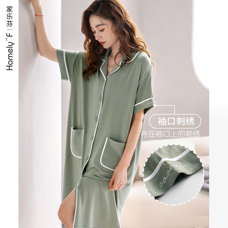 Carrefineネグリジェレディースパジャマ夏夏夏モーダル半袖長袖妊婦プラスサイズシャツカーディガン jial17831943541