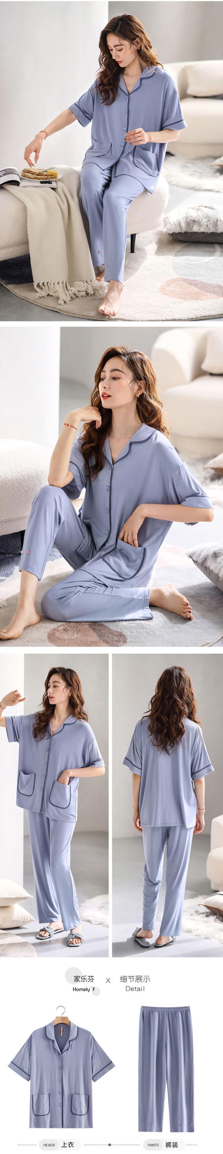Carrefineパジャマレディースサマーモーダル半袖パンツホームサービスアイスシルクサマーサマーラージサイズレディーススーツ jial89776918154