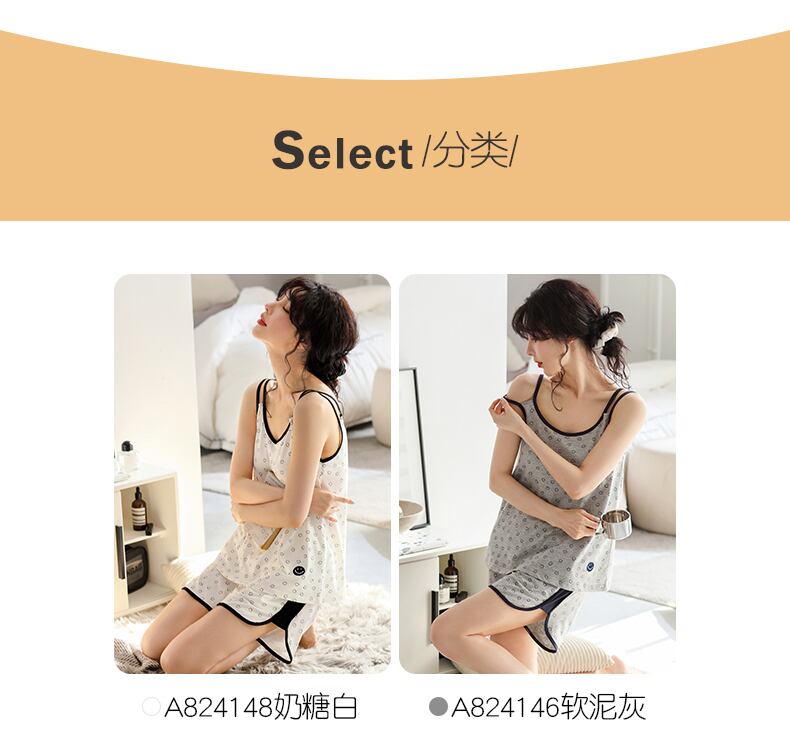 Carrefineパジャマサマーコットンノースリーブベストスリングショーツホームウェアサマーサマーシンスーツ jial26476025862