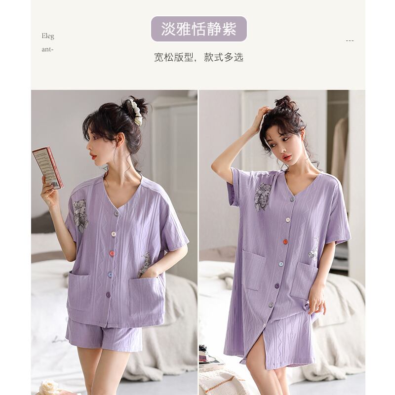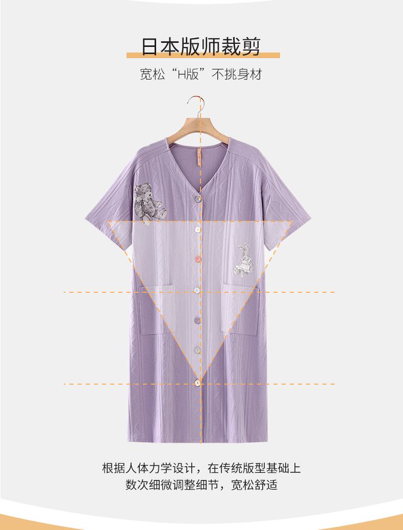 Carrefineネグリジェレディースパジャマ夏夏夏綿半袖カーディガンシャツ長く薄いセクション高品質 jial68490352475