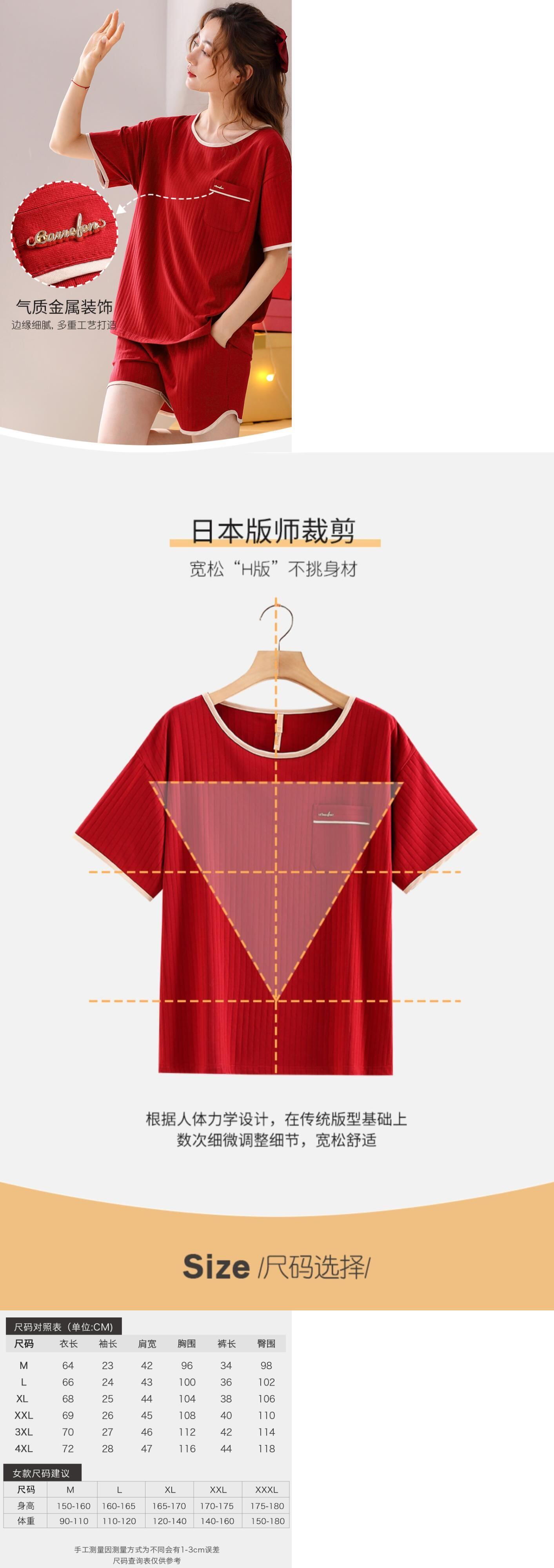 Carrefineパジャマレディース夏綿半袖ショーツホームサービス夏夏出生年大きな赤いスーツ jial45448553999