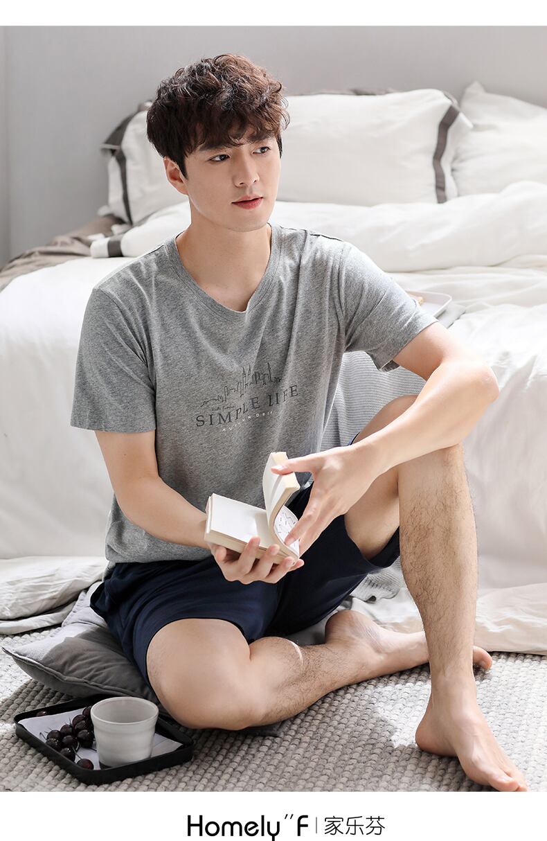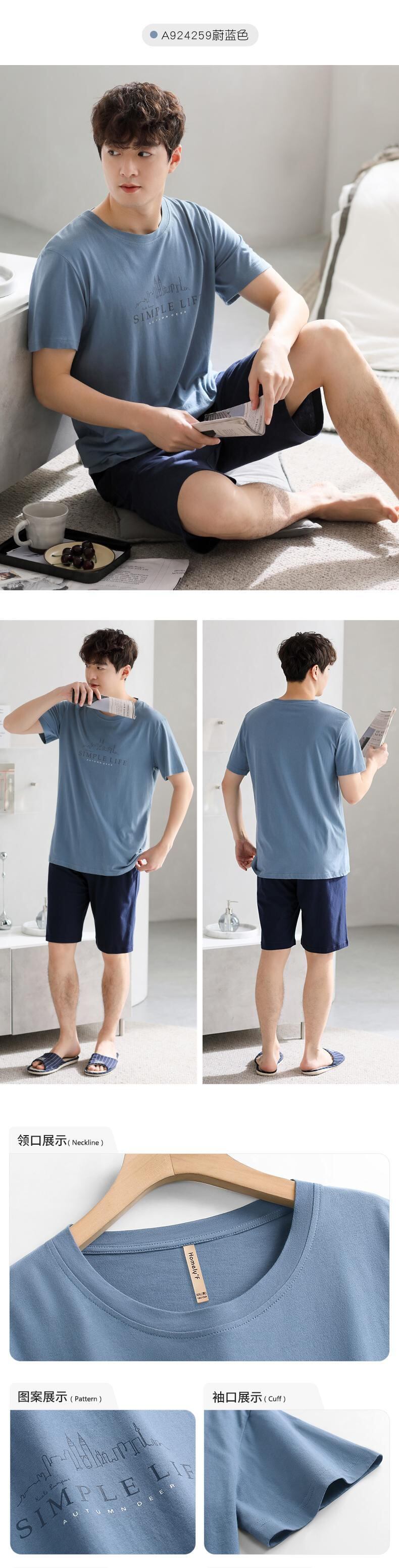 Carrefineパジャマメンズサマーコットン半袖ショーツホームウェアメンズサマーサマーラージサイズシンスーツ jial3697714726