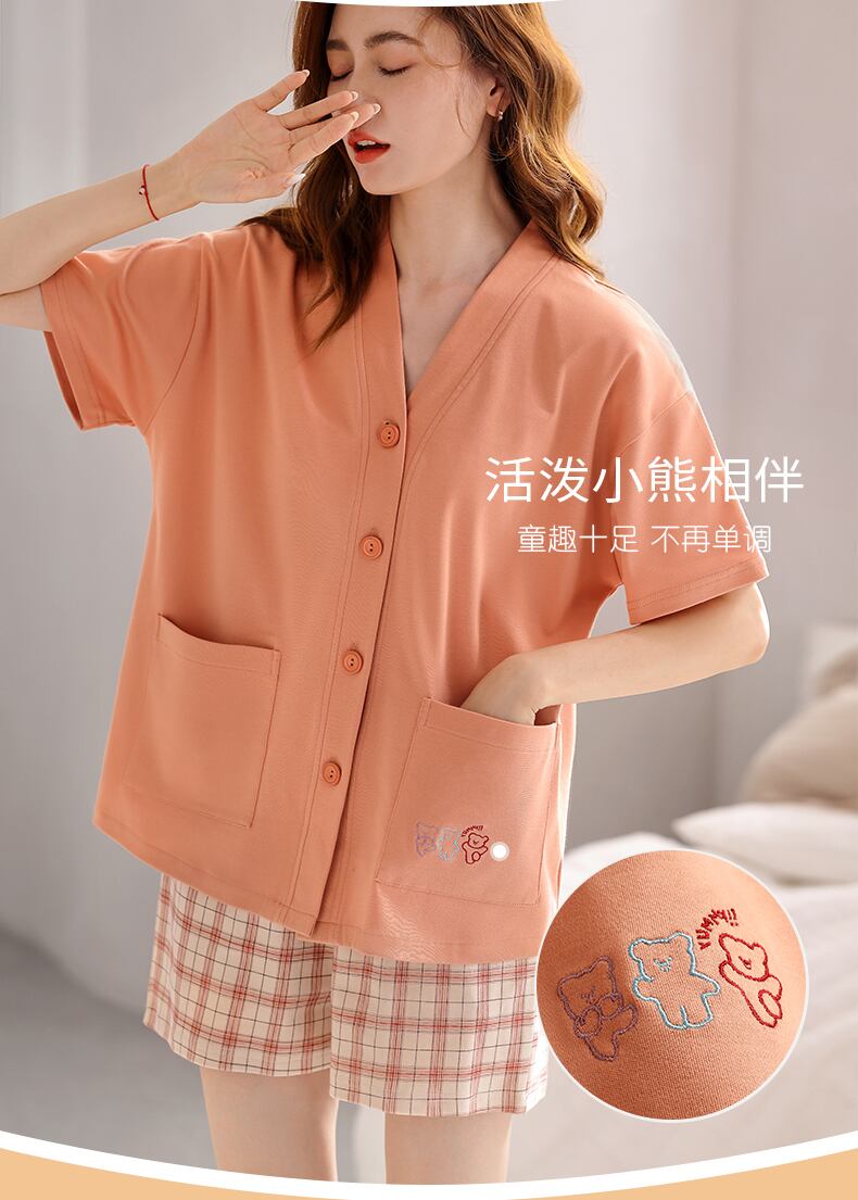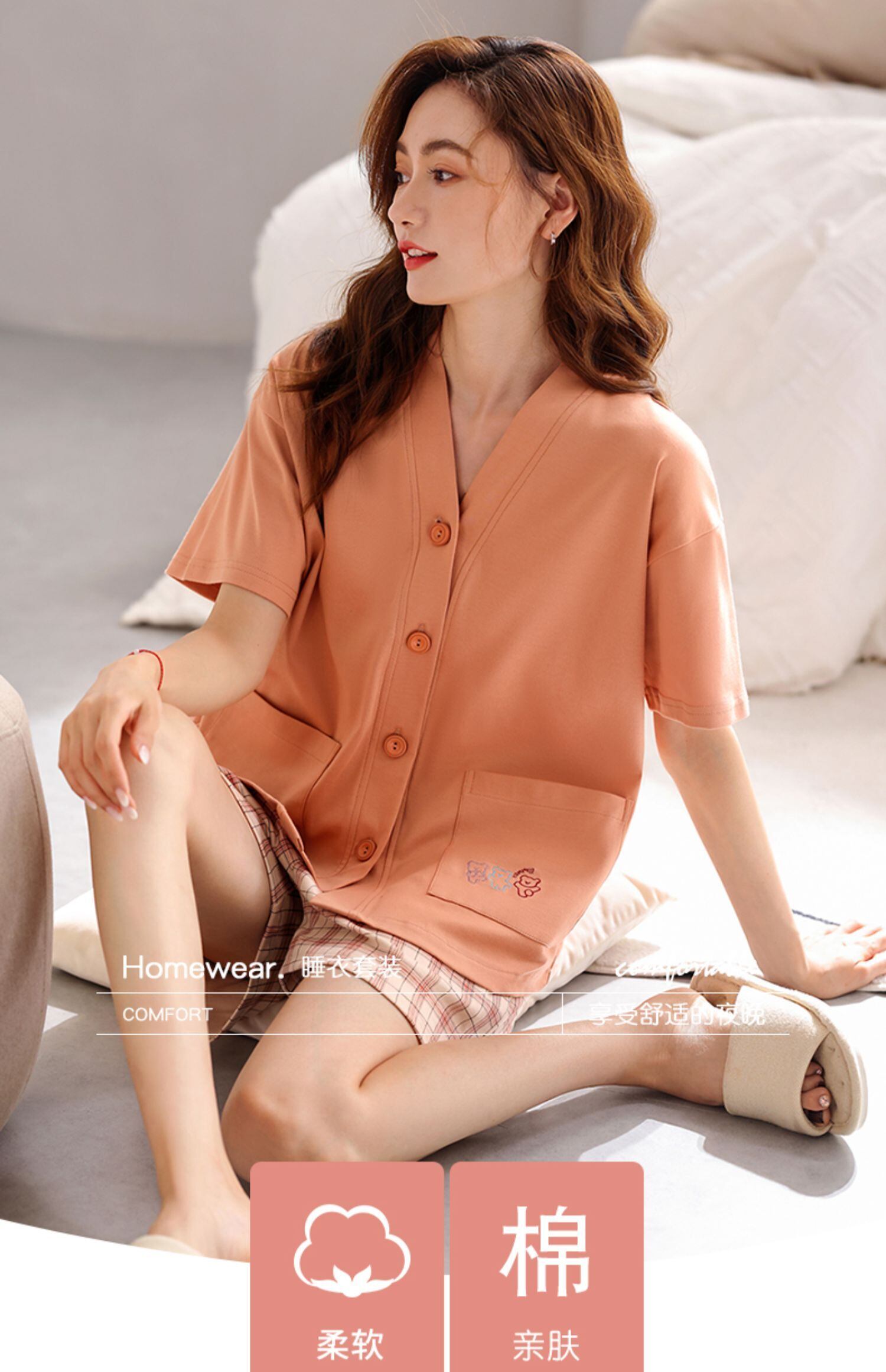 Carrefineパジャマサマーコットン半袖ショーツホームウェアサマーサマー薄切片ラージサイズコットンスーツ jial13909732669