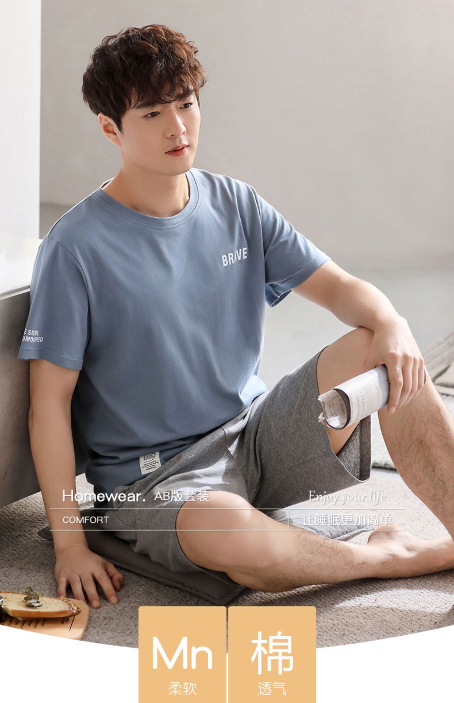 Carrefineパジャマメンズサマーコットン半袖ショーツホームウェアメンズメンズサマーサマーシンスーツ jial59245701135