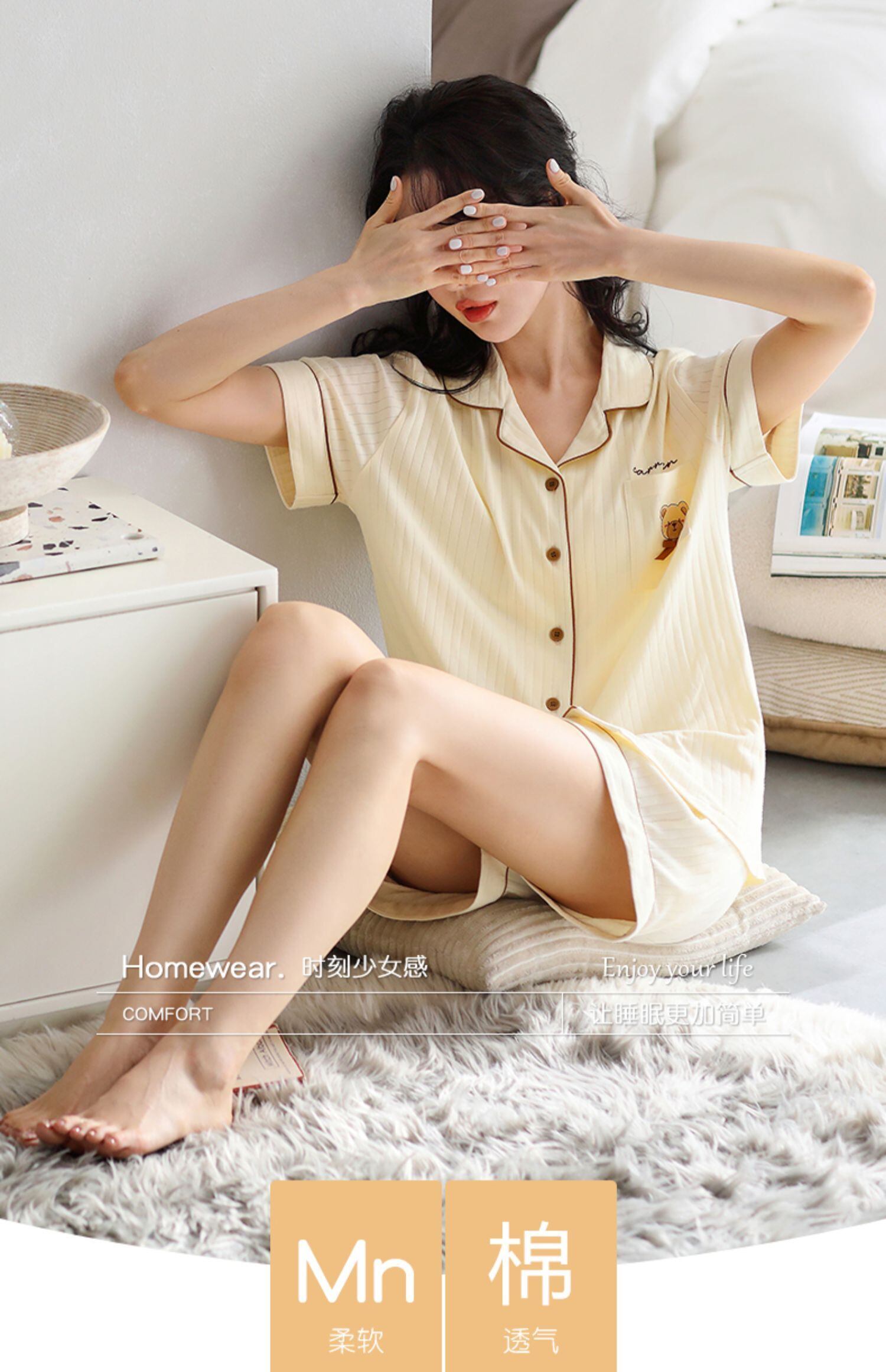 Carrefineパジャマサマーコットン半袖ショーツホームウェアサマーシンラージサイズスーツ jial90216618487