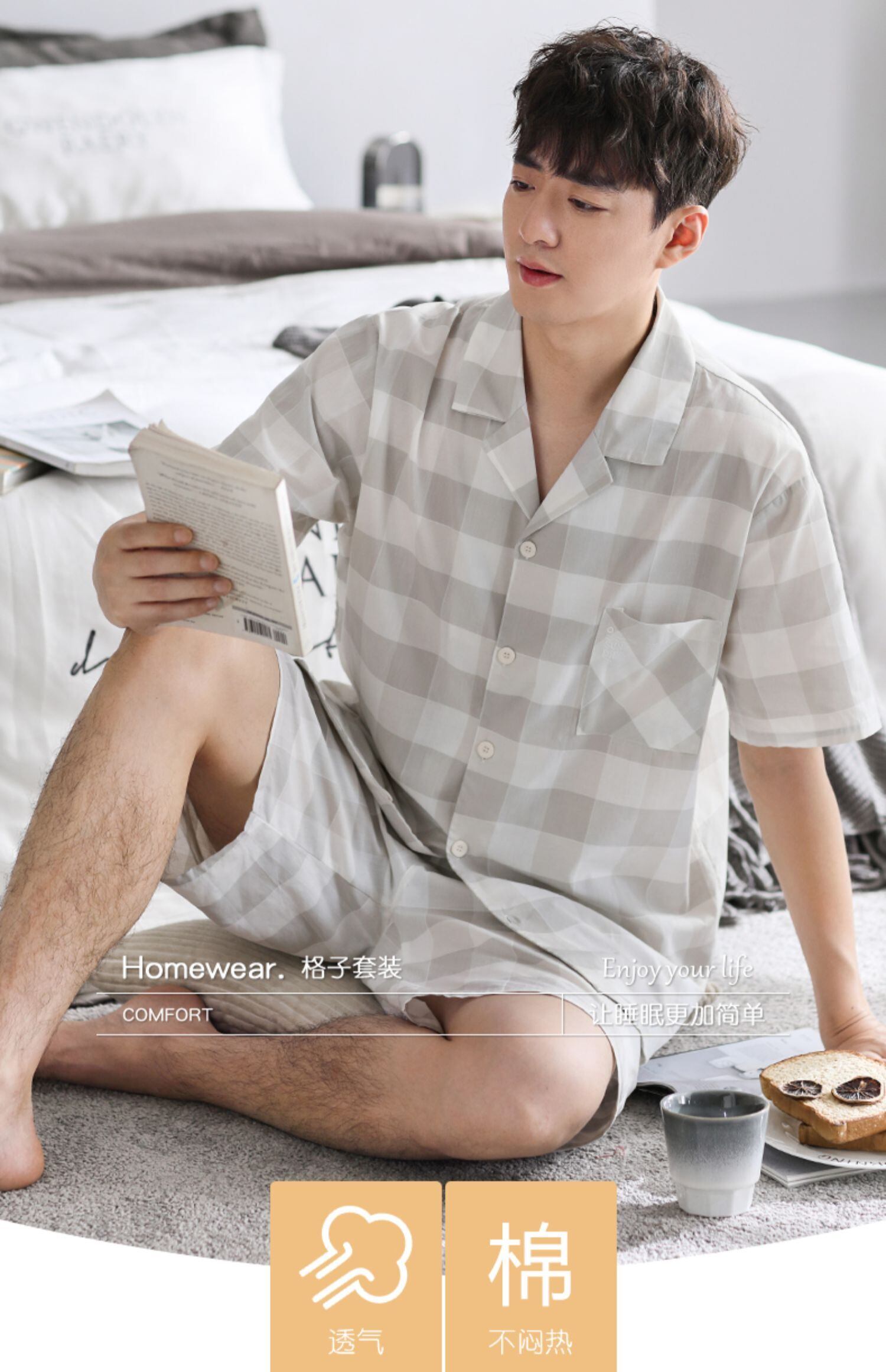 【同スタイルショッピングモール】パジャマメンズ夏夏コットン半袖コットン織りコットンガーゼホームウェアスーツ jial61499636316