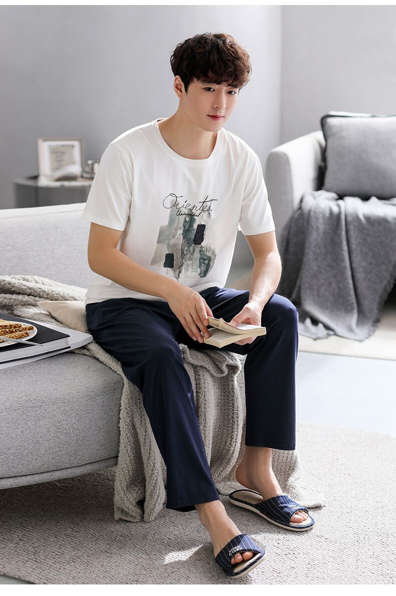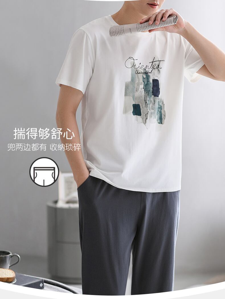 Carrefineパジャマメンズサマーコットン半袖パンツホームウェアメンズサマーサマー薄切片ラージサイズスーツ jial18457368907