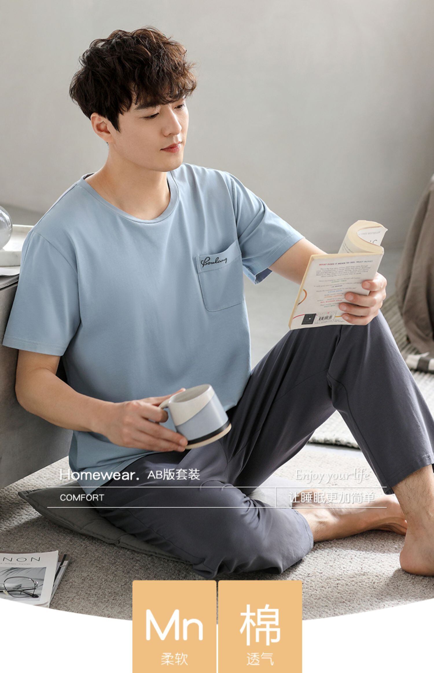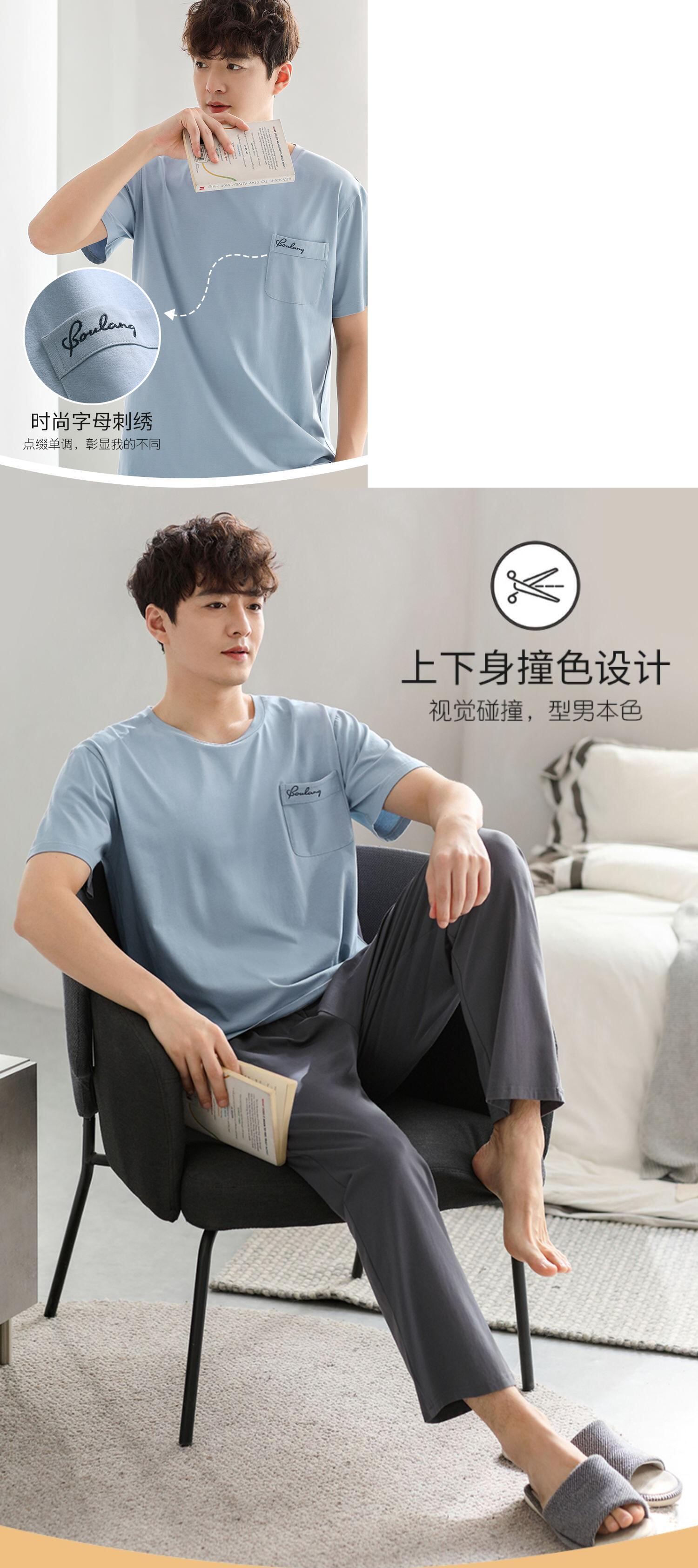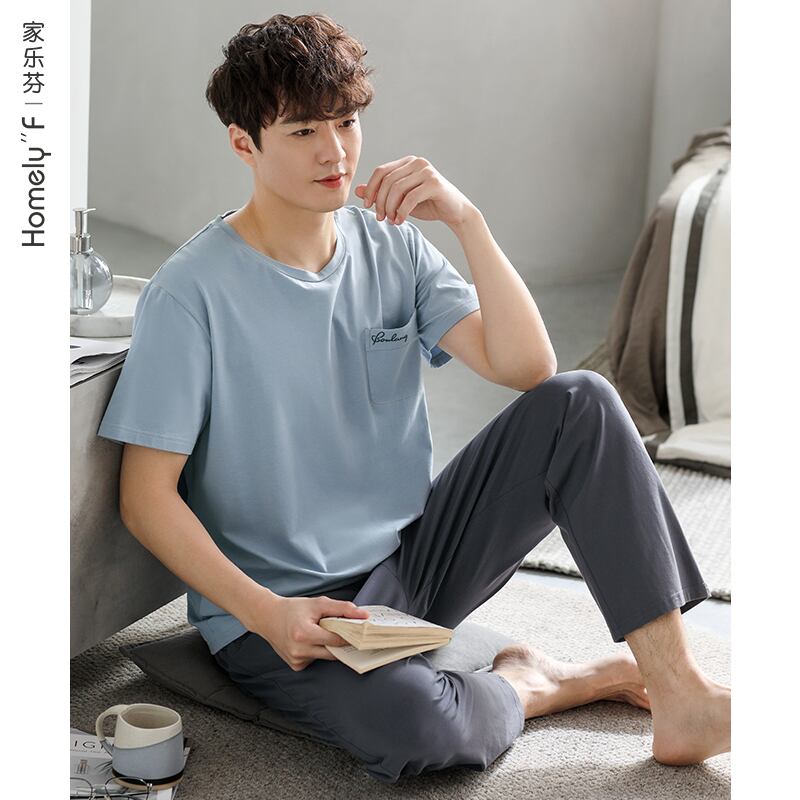 Carrefineパジャマメンズサマーコットン半袖パンツホームウェアメンズメンズサマーサマーシンスーツ jial19551457179