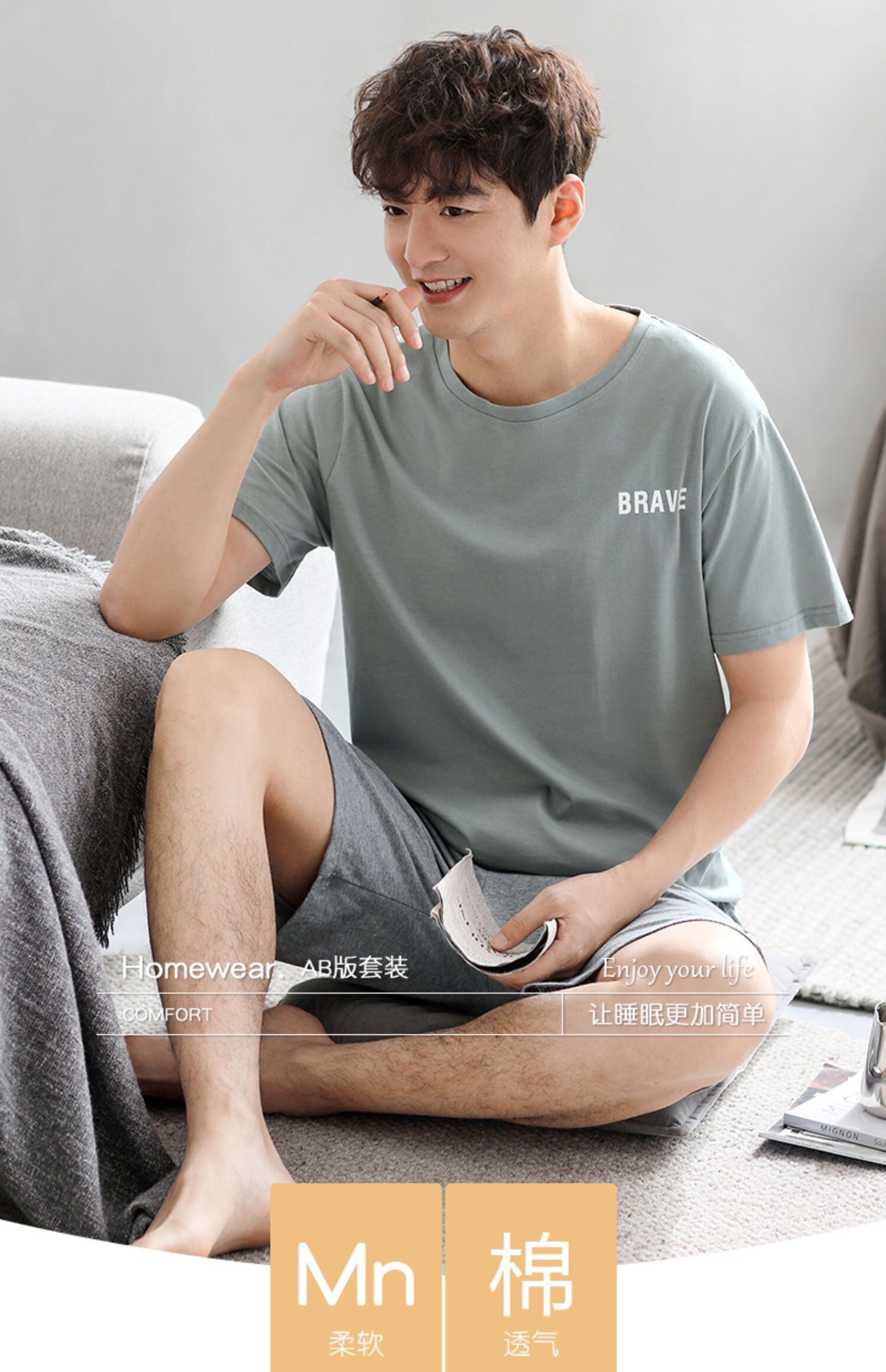 Carrefineパジャマメンズサマーコットン半袖ショーツホームウェアメンズメンズサマーサマーシンスーツ jial34406011939