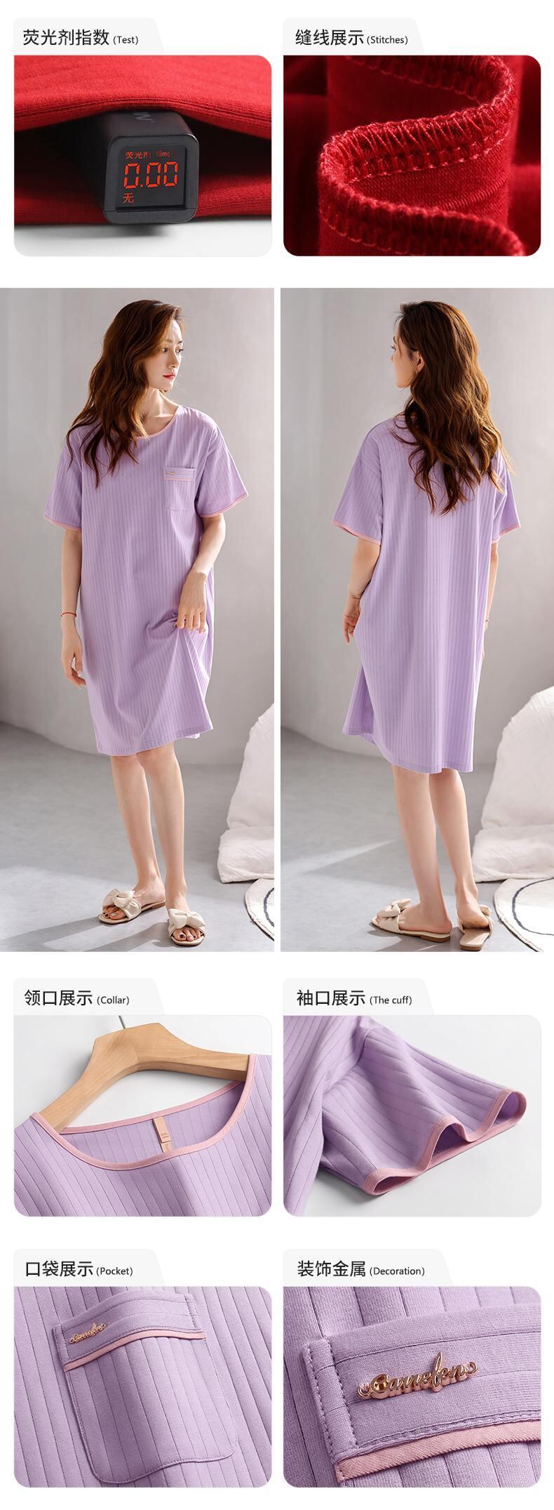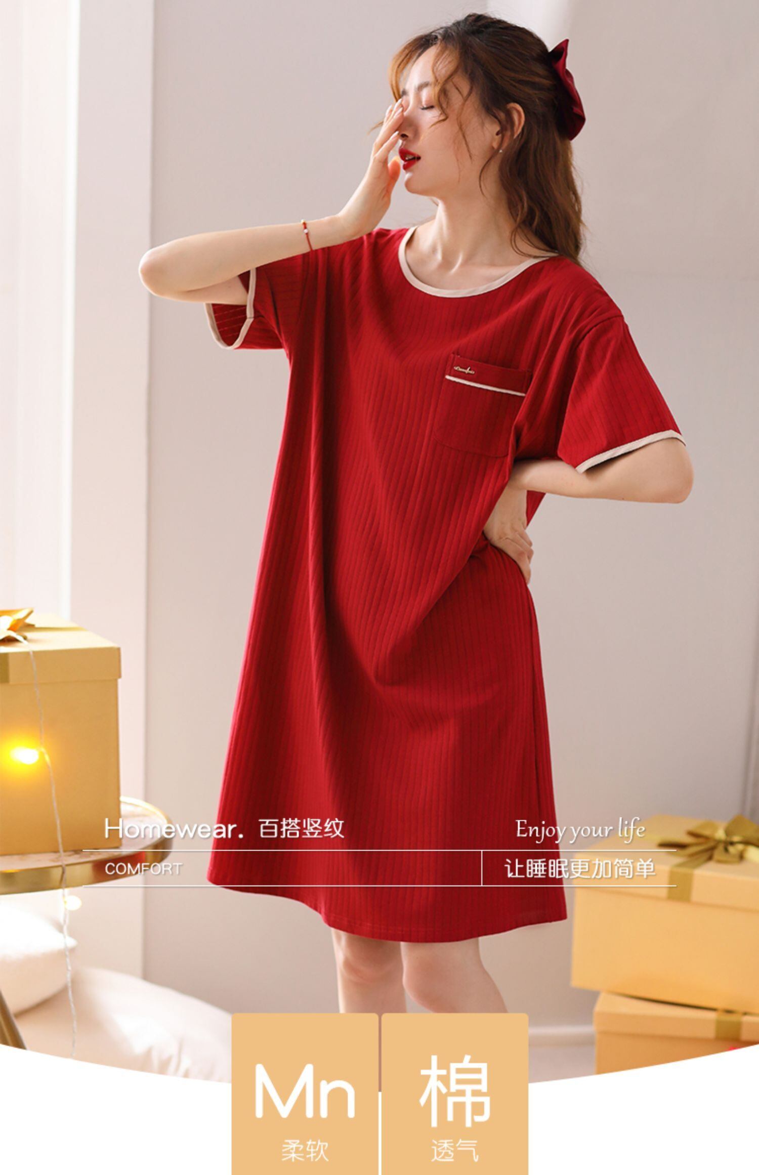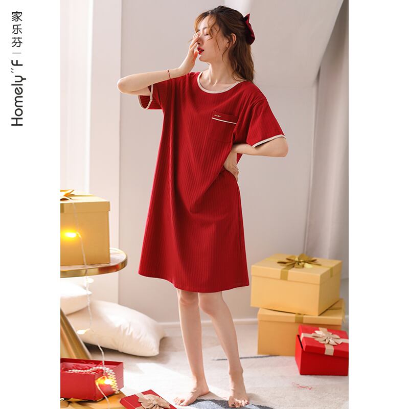 Carrefineネグリジェ女性のパジャマ夏綿半袖夏夏長く薄いセクション大きいサイズ出生年大きな赤 jial38628240904