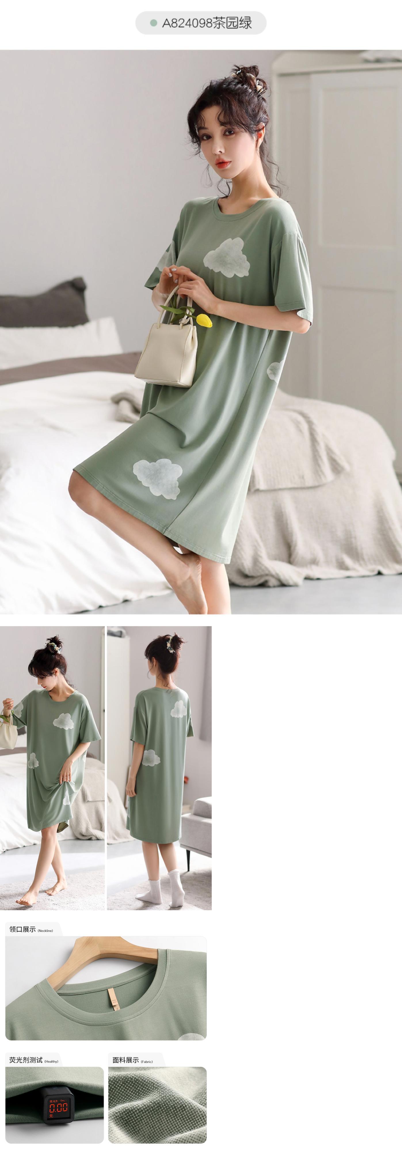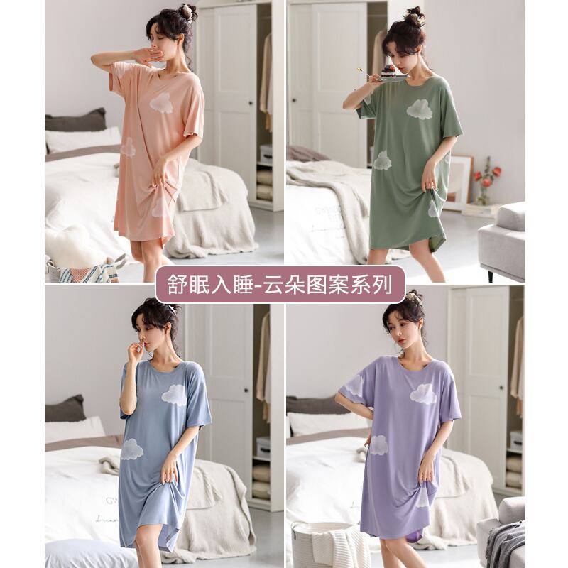 Carrefineネグリジェレディースパジャマサマーモーダル半袖薄片ロングセクションサマーセクション薄片アイスシルクラージサイズ jial98399923981