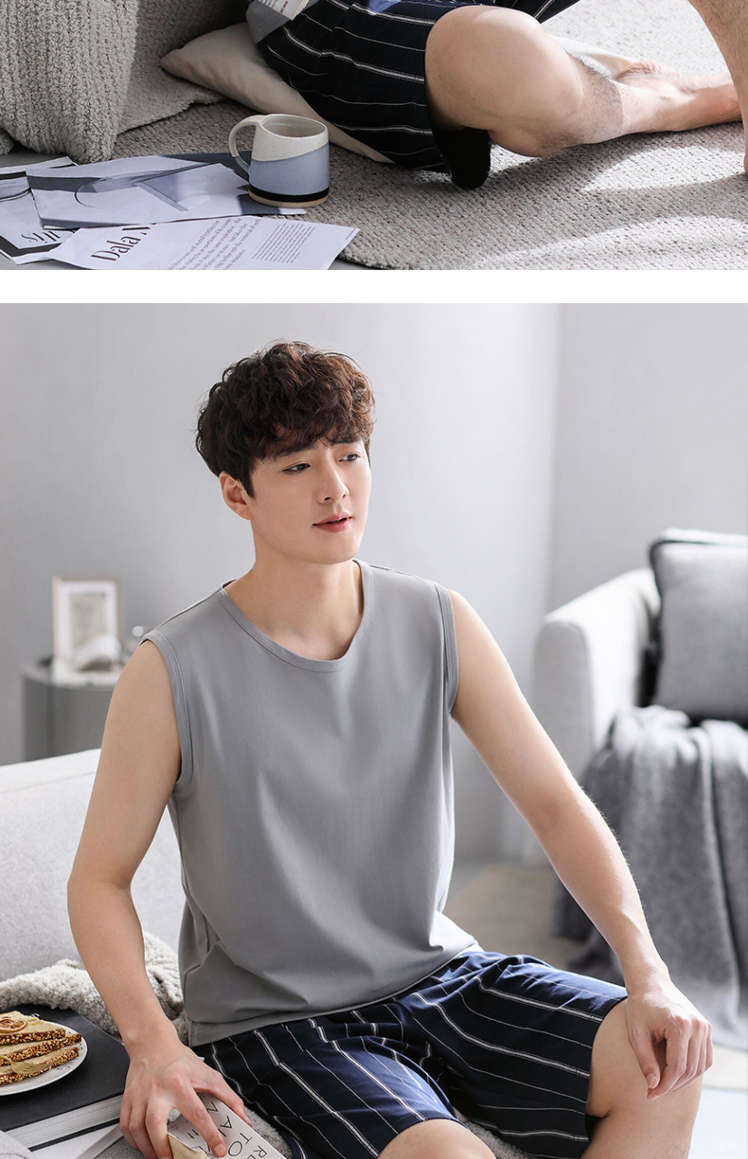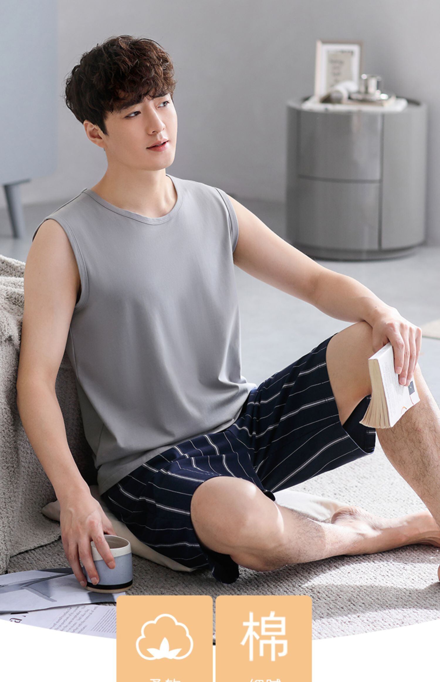 Carrefineパジャマメンズサマーコットンベストノースリーブショーツホームウェアメンズサマーサマーラージサイズスーツ jial61782231565