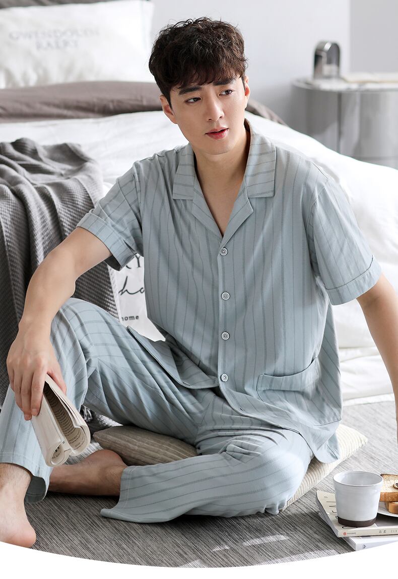 Carrefineパジャマメンズサマーコットン半袖パンツホームウェアメンズサマーサマープラスサイズお父さんスーツ jial56098063141