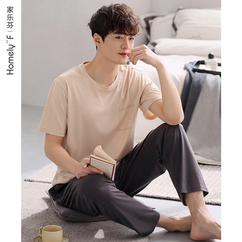 Carrefineパジャマメンズサマーコットン半袖パンツホームウェアメンズメンズサマーサマーシンスーツ jial7584274946