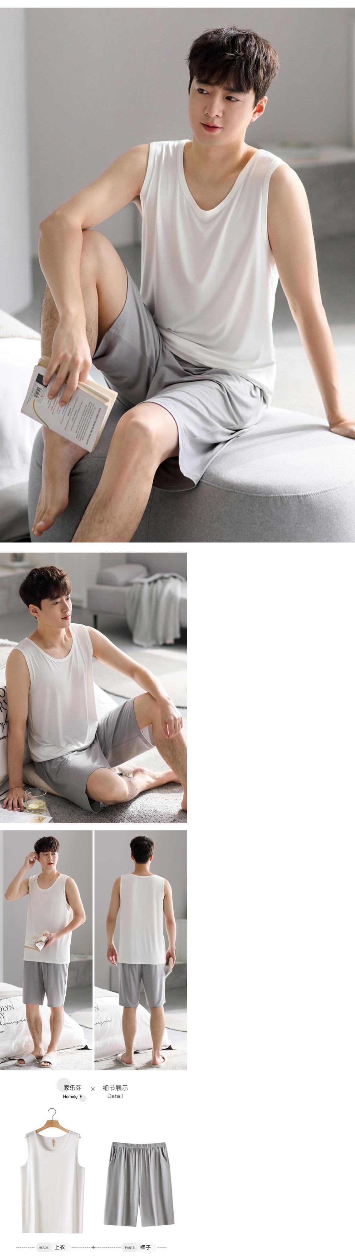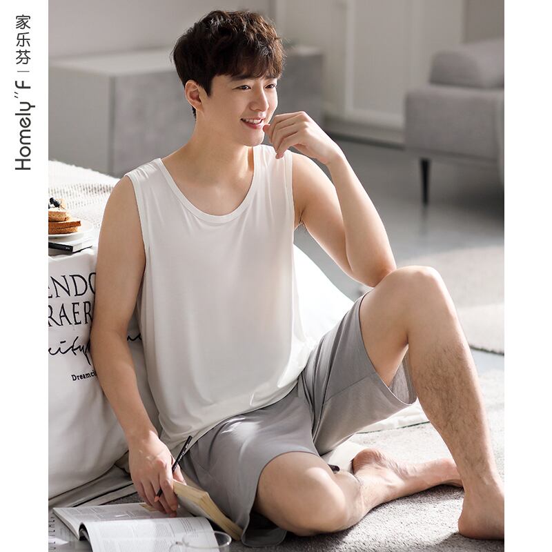 Carrefineパジャマメンズ夏夏モーダルベストノースリーブラウンジウェアメンズ薄いアイスシルクメンズスーツ jial55697434355