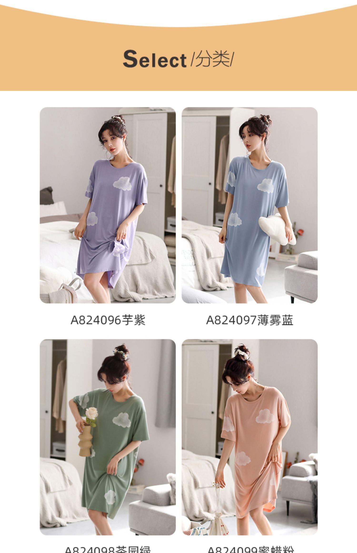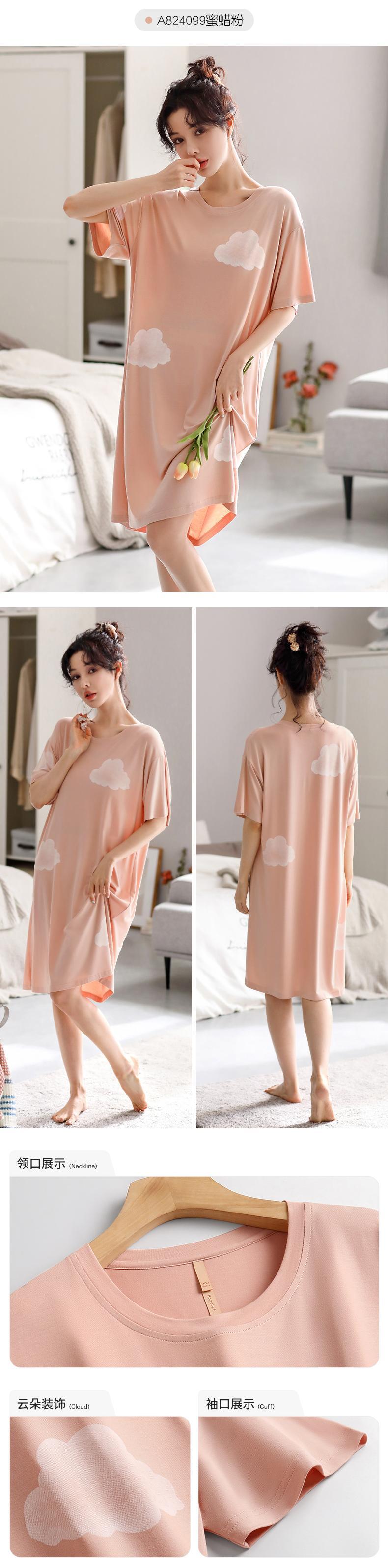 Carrefineネグリジェレディースパジャマサマーモーダル半袖薄片ロングセクションサマーセクション薄片アイスシルクラージサイズ jial33278678532