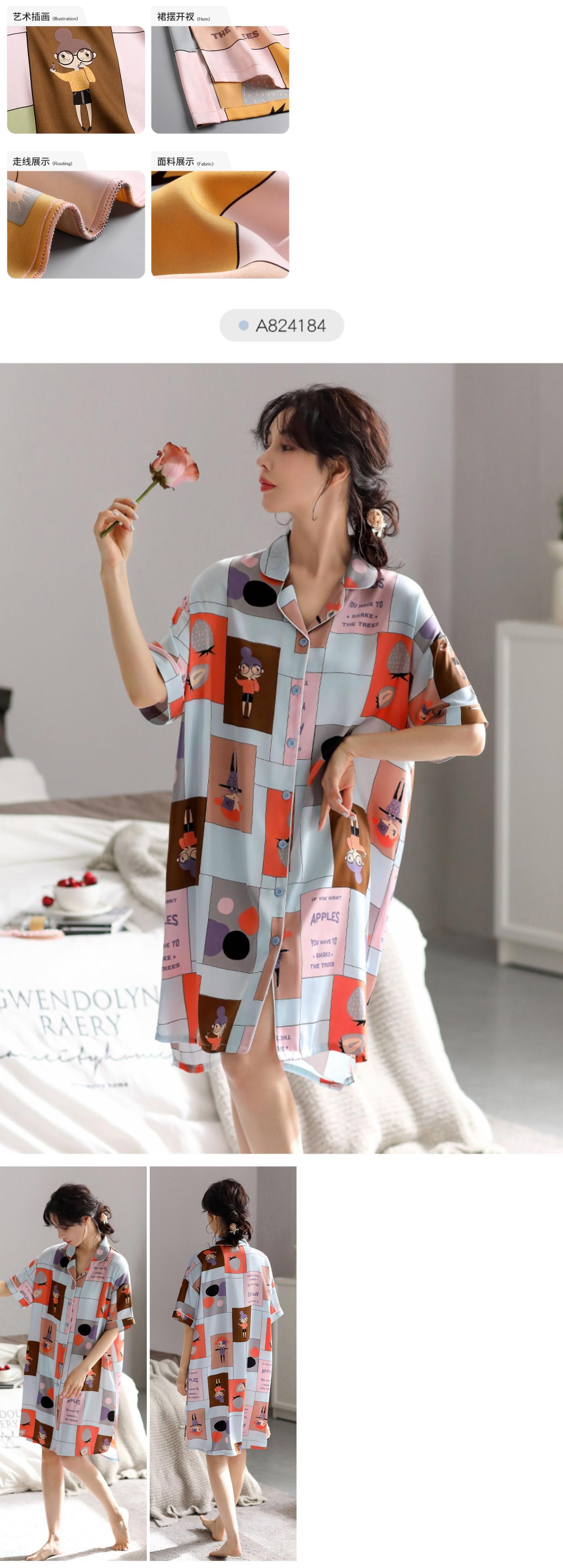 Carrefineネグリジェレディースパジャマ夏夏シルクアイスシルク半袖カーディガンシャツ薄い模造シルク jial54321475236