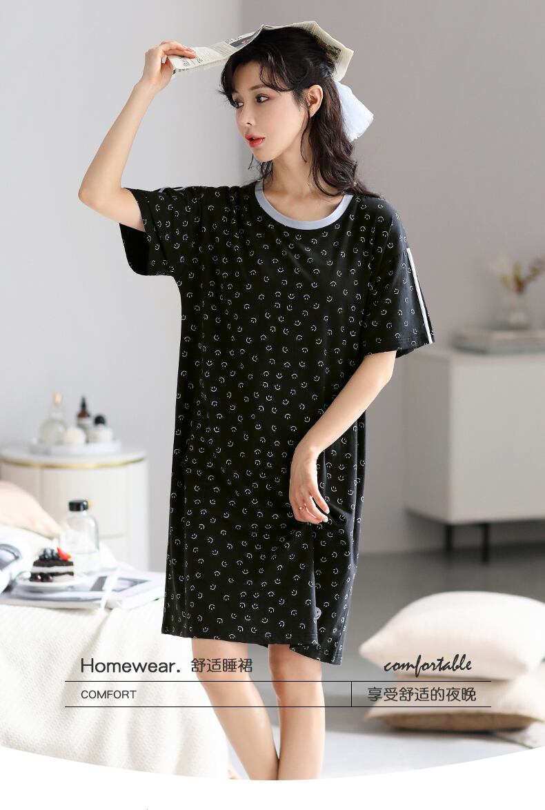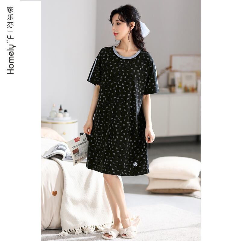 Carrefineネグリジェレディースパジャマスカート夏夏夏コットン半袖ロングセクションラージサイズ薄いセクションは外で着用することができます jial67013485981