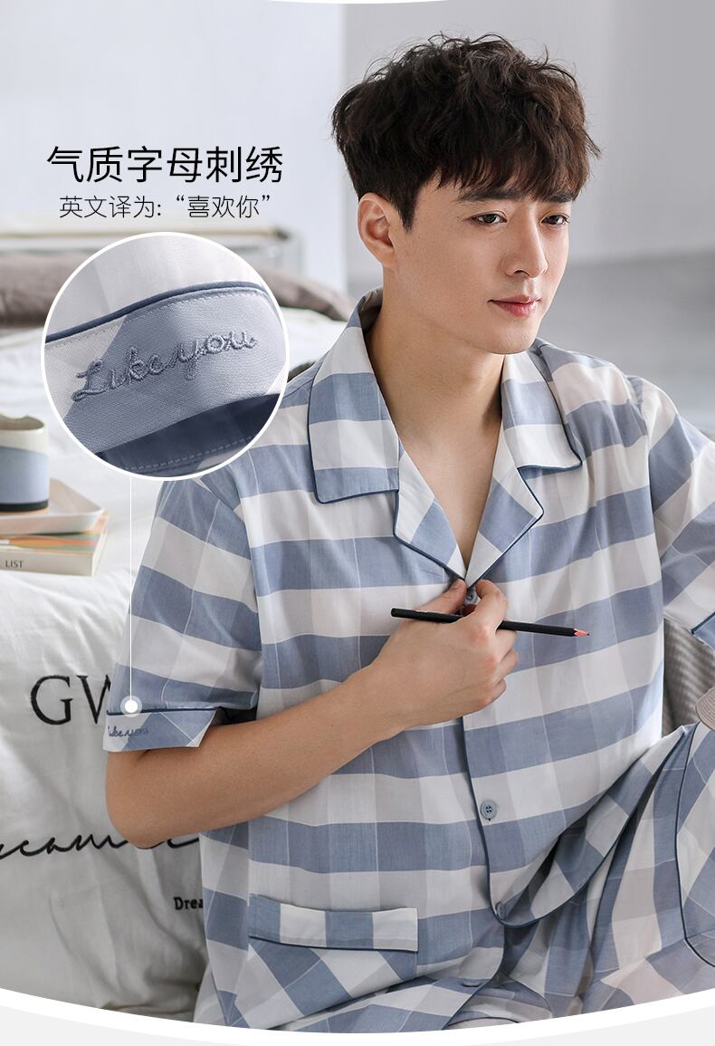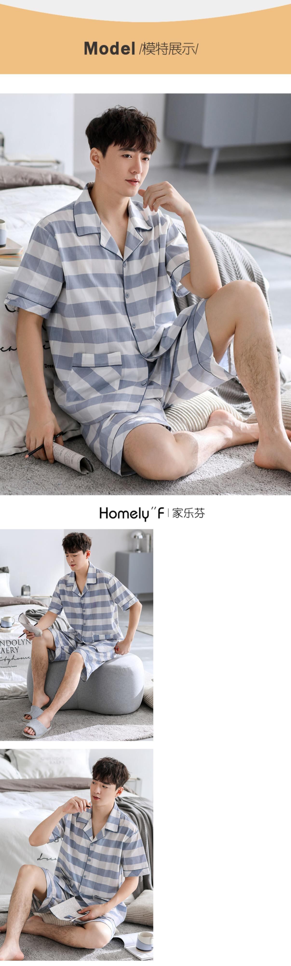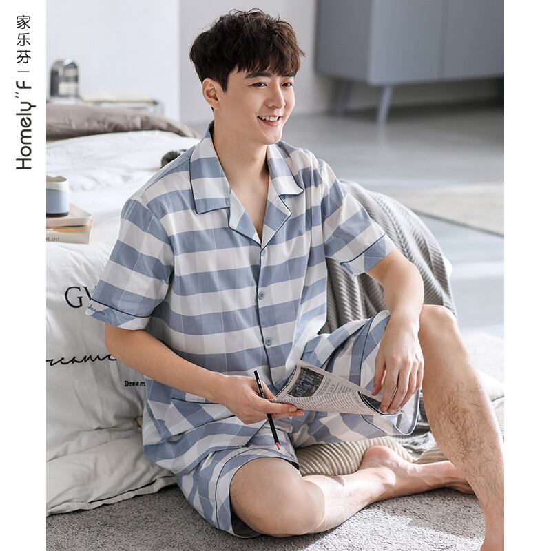 【同スタイルショッピングモール】パジャマメンズ夏夏コットン半袖コットン織りコットンガーゼホームウェアスーツ jial63042494563