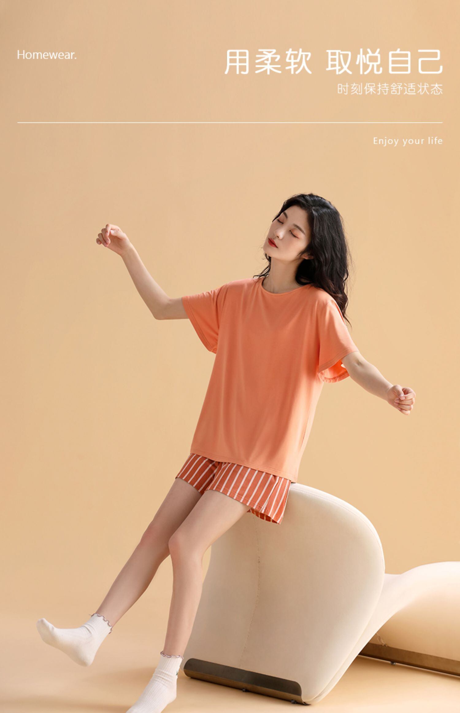 【涼しさ】Jiarefenパジャマレディース夏夏モーダル半袖ショーツホームサービス夏薄めアイスシルク jial16360518770