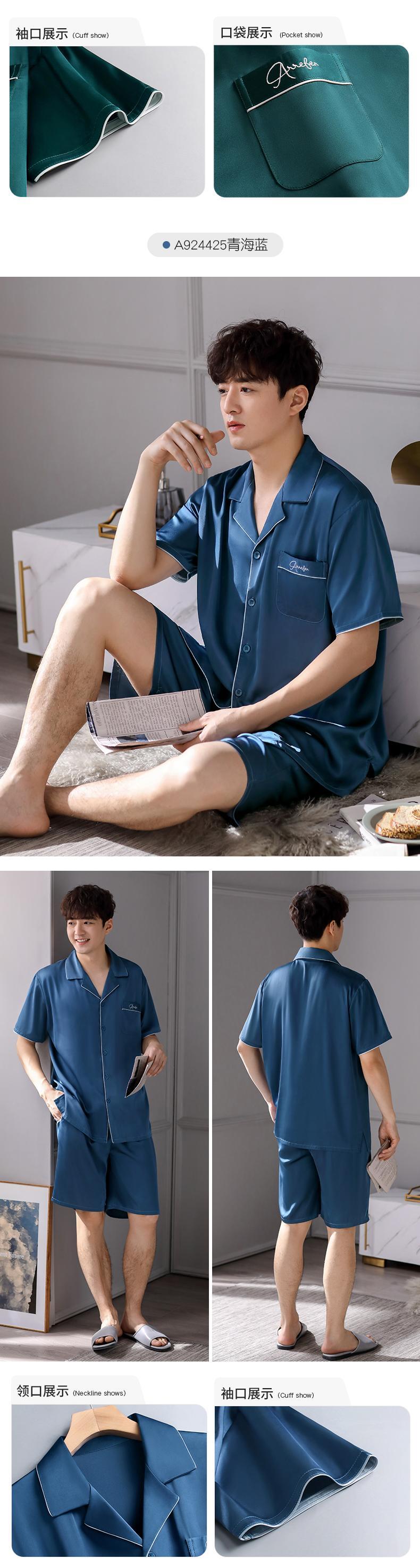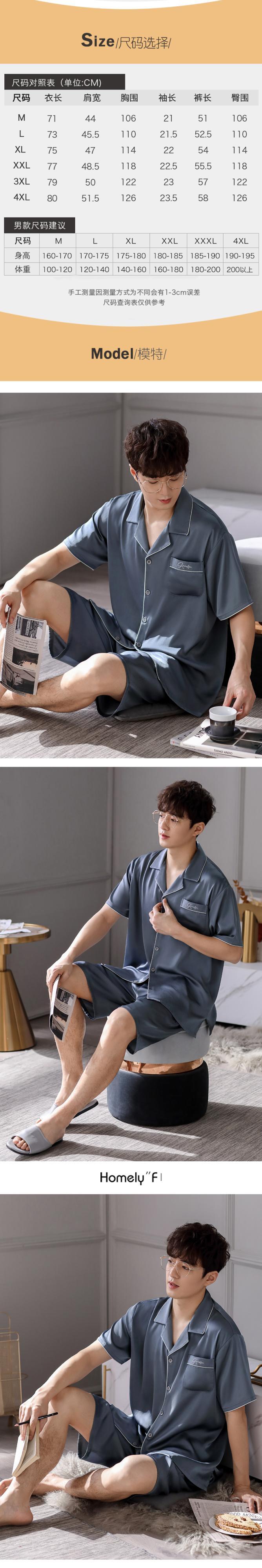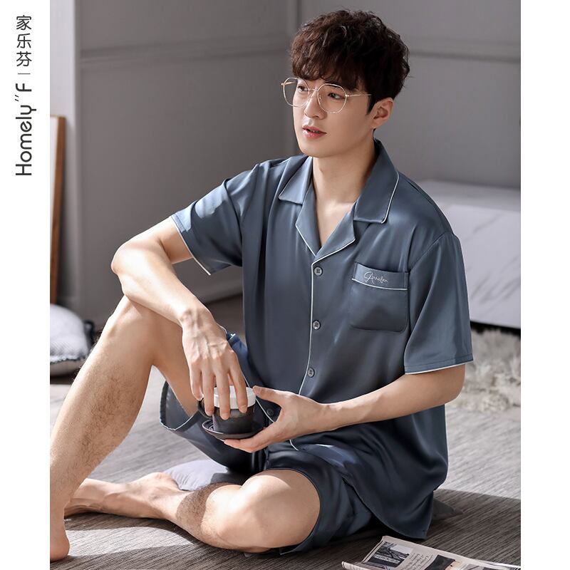 Carrefineパジャマメンズ夏夏シルクアイスシルク半袖ショーツホームサービスメンズ薄手シミュレーションシルク jial32963274055